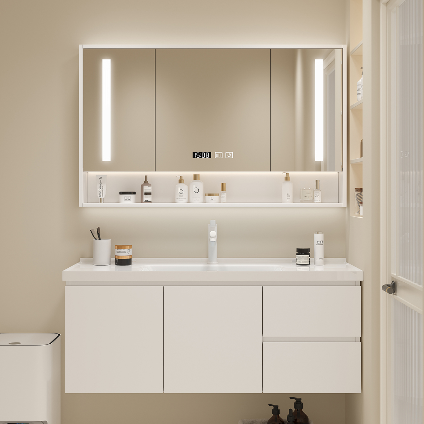 现代简约卫生间实木智能浴室柜洗漱台洗手洗脸盆柜组合收纳套装