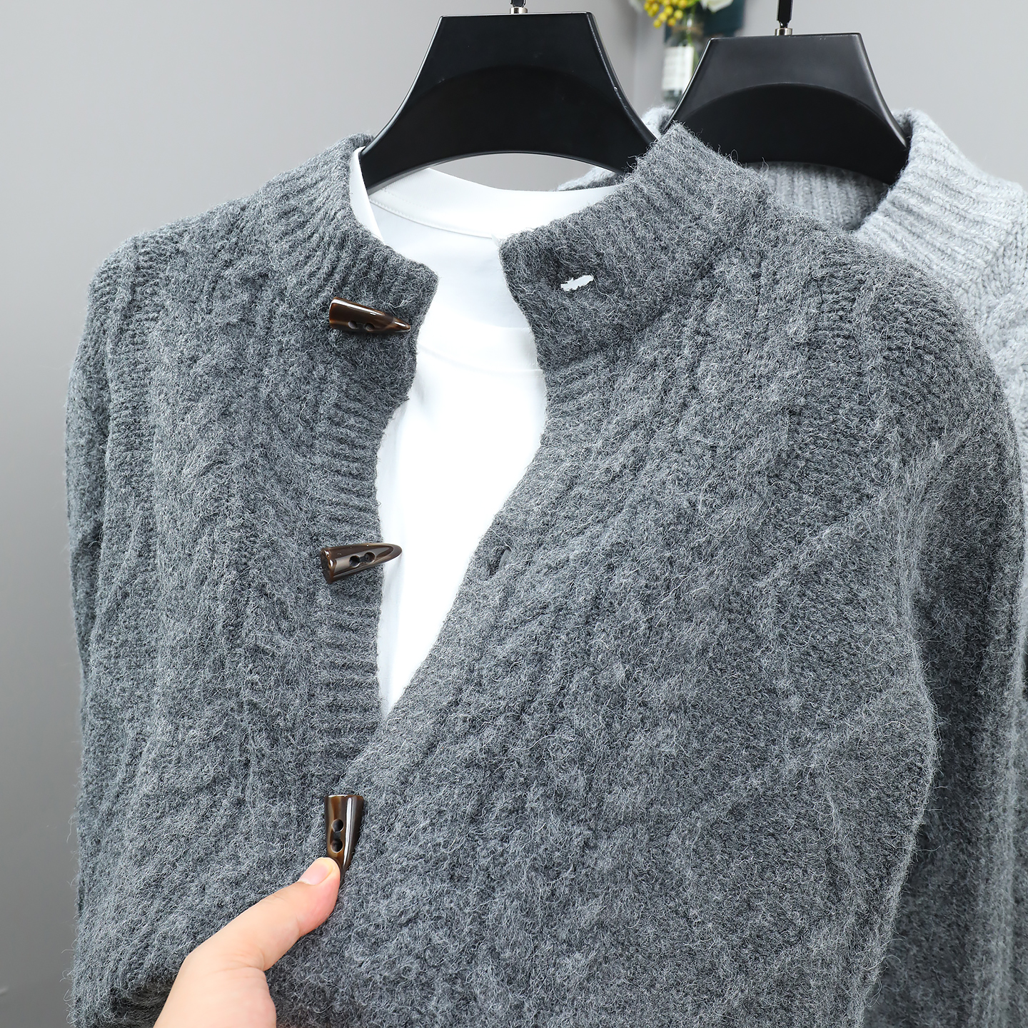 休闲针织衫 CHINISM赤尘 美式 毛衣男冬季 外套 灰色简约立领拉链开衫