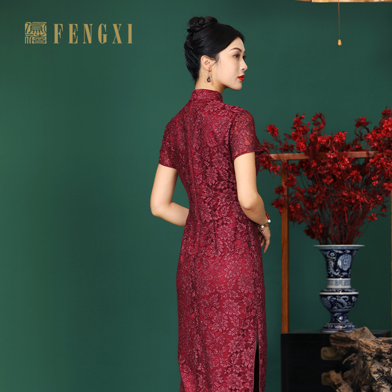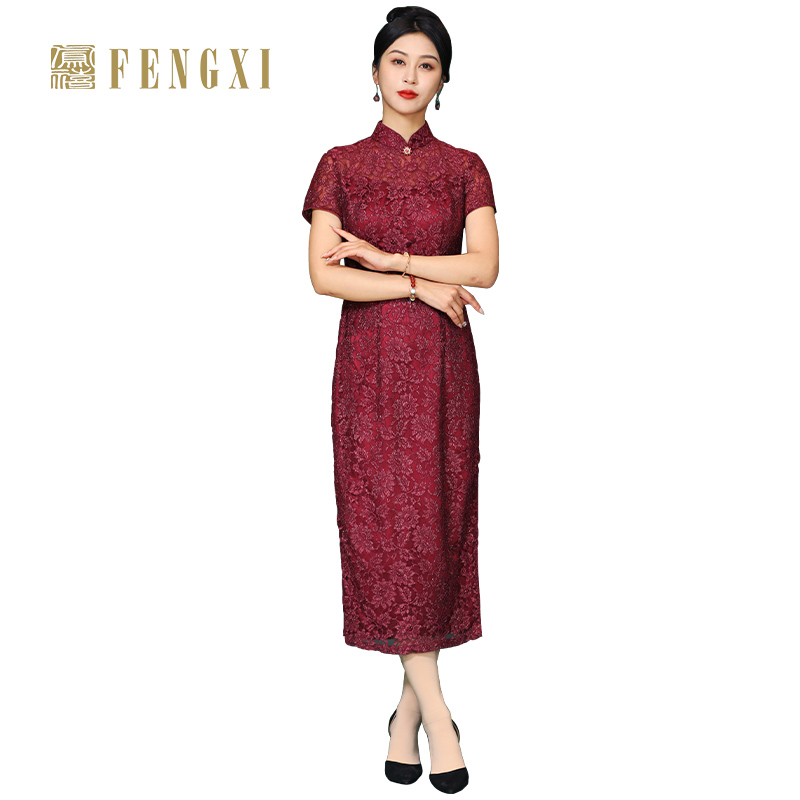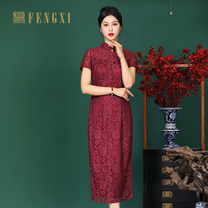 凤禧红喜婆婆婚宴装 蕾丝旗袍喜妈妈婚庆礼服喜服婚礼高端2025新C