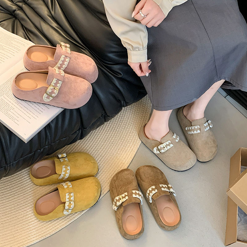 D1P1DAH5预 加毛厚底包头休闲鞋 方枪枪同款 百丽厚切吐司勃肯拖鞋