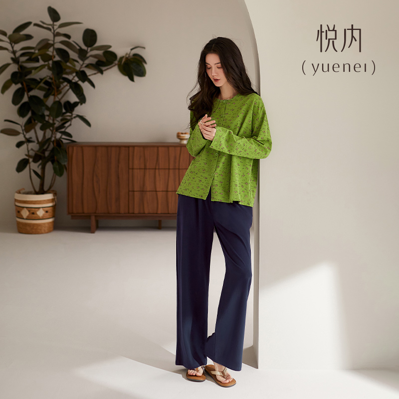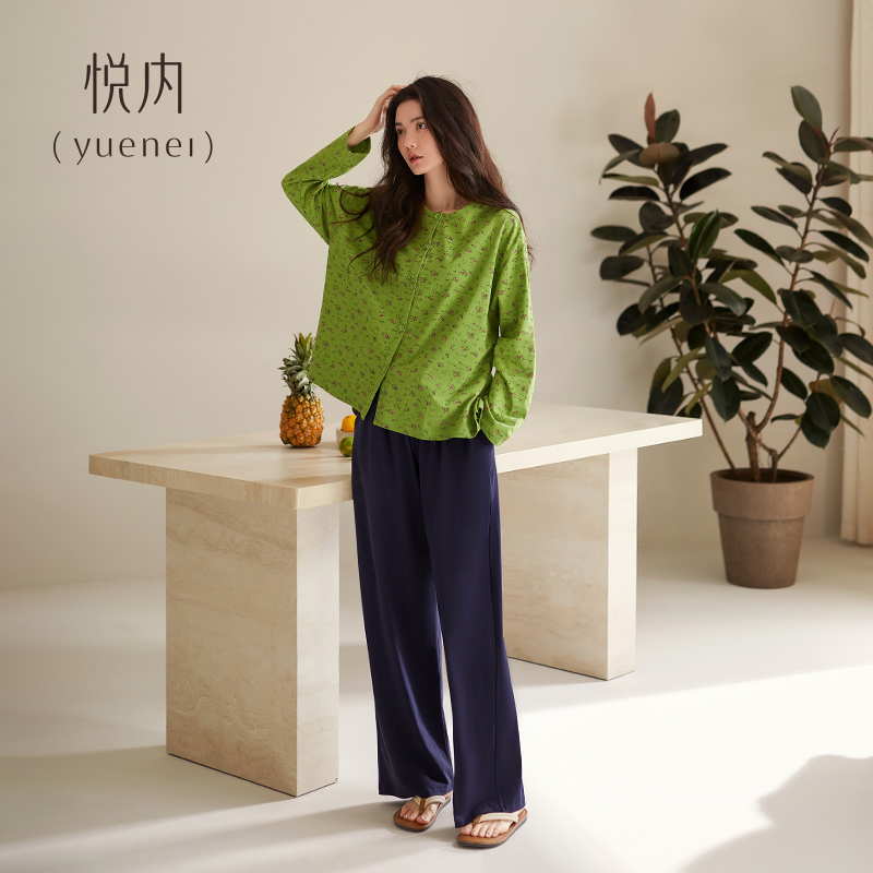 家居服秋天圆领优雅碎花开衫 纯棉长袖 可外穿 秋季 悦内睡衣女春秋款