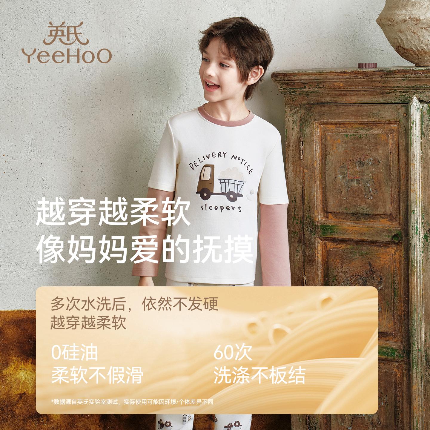 子分体纯棉男童内衣套装 裤 家居服 长袖 英氏儿童睡衣小男孩2025新款