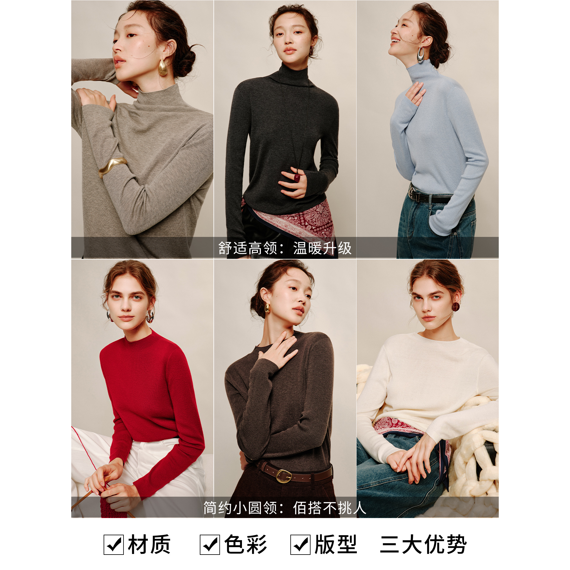 打底衫 衣香丽影45支羊毛针织衫 舒适亲肤修身 新款 上衣 女2025年冬装