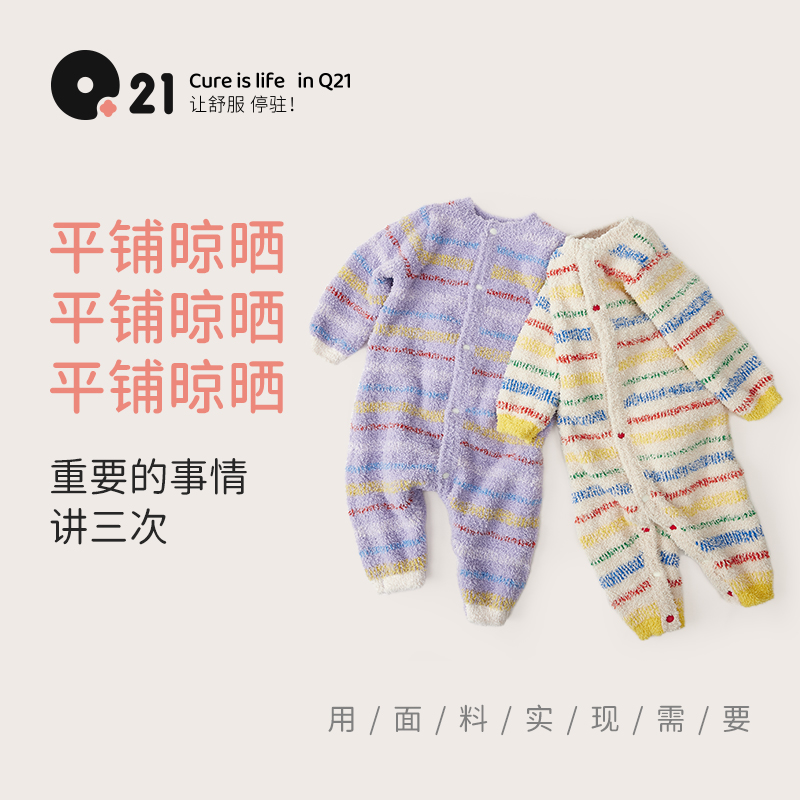 Q21宝宝半边绒爬爬服秋冬季 婴儿A类亲肤柔软保暖酷萌条纹连体衣