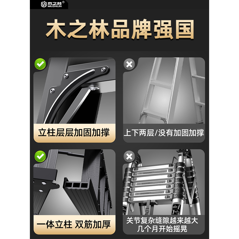 超稳人字梯铝合金家庭用室内折叠伸缩踏步加厚加粗款 特厚工程专用