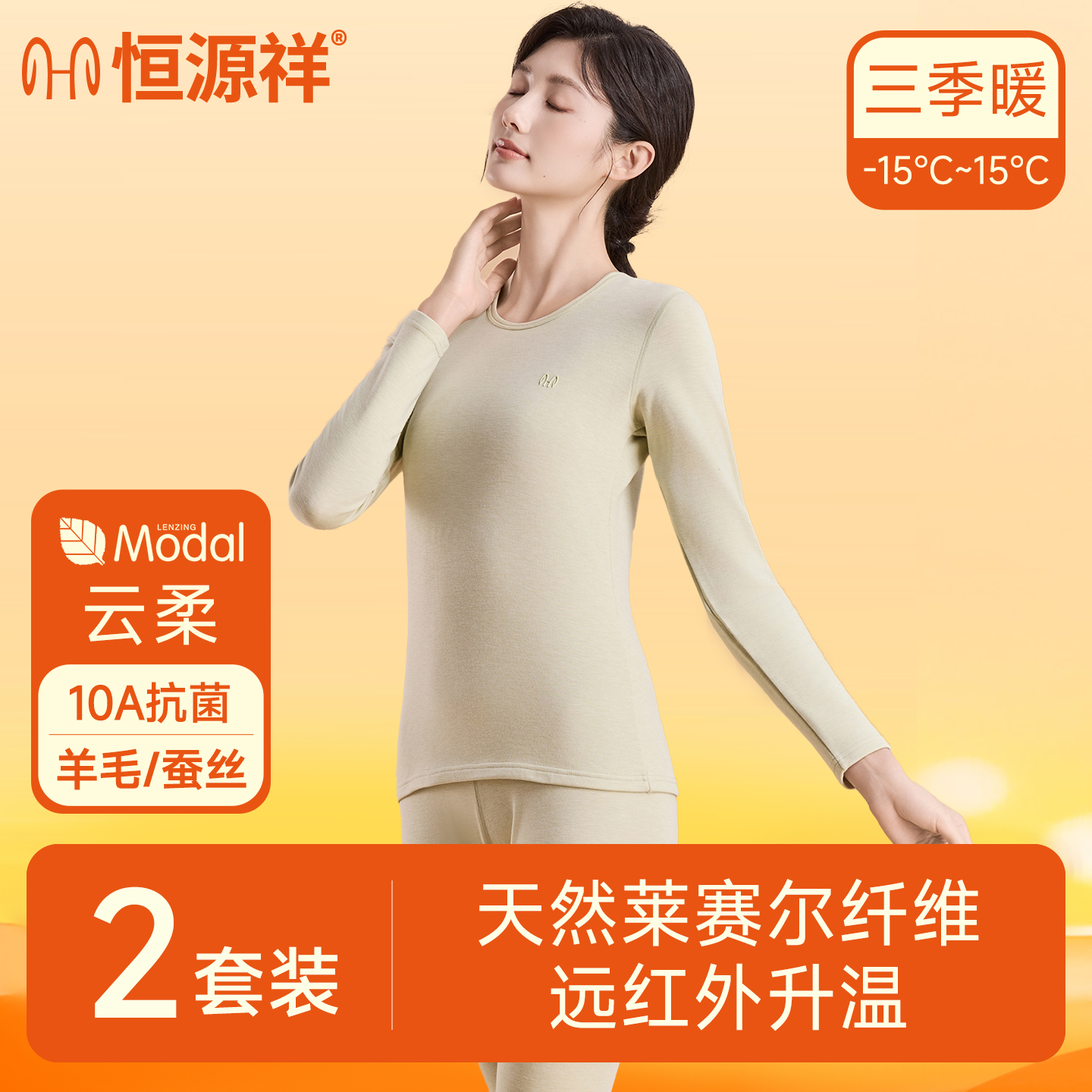 恒源祥保暖套装 女10A抑菌羊毛蚕丝秋冬发热打底无痕亲肤2025新款