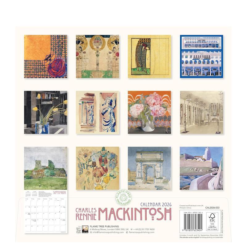 2026 日历文创送礼Fla 艺术日历 Mackintosh Wall Rennie 2026年查尔斯?伦尼?麦金托什挂历 Charles 进口原版 Calendar 预售