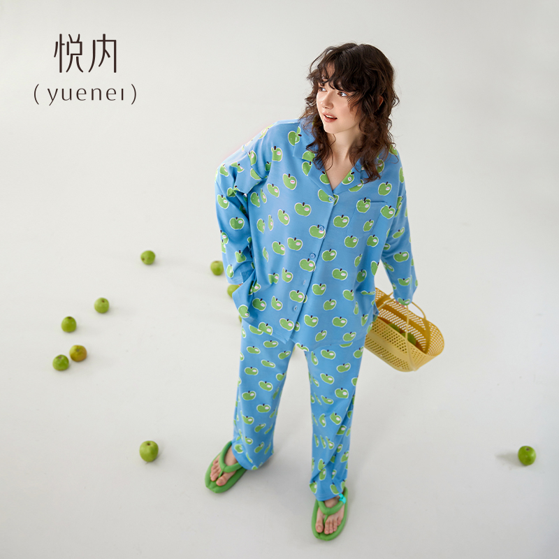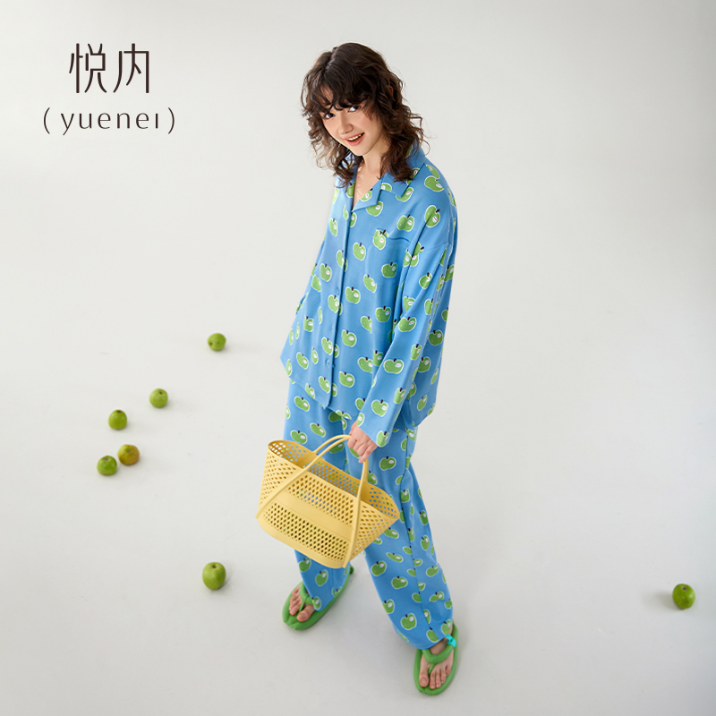 休闲多巴胺色系苹果套装 悦内睡衣女春秋款 家居服时尚 纯棉长袖 秋季
