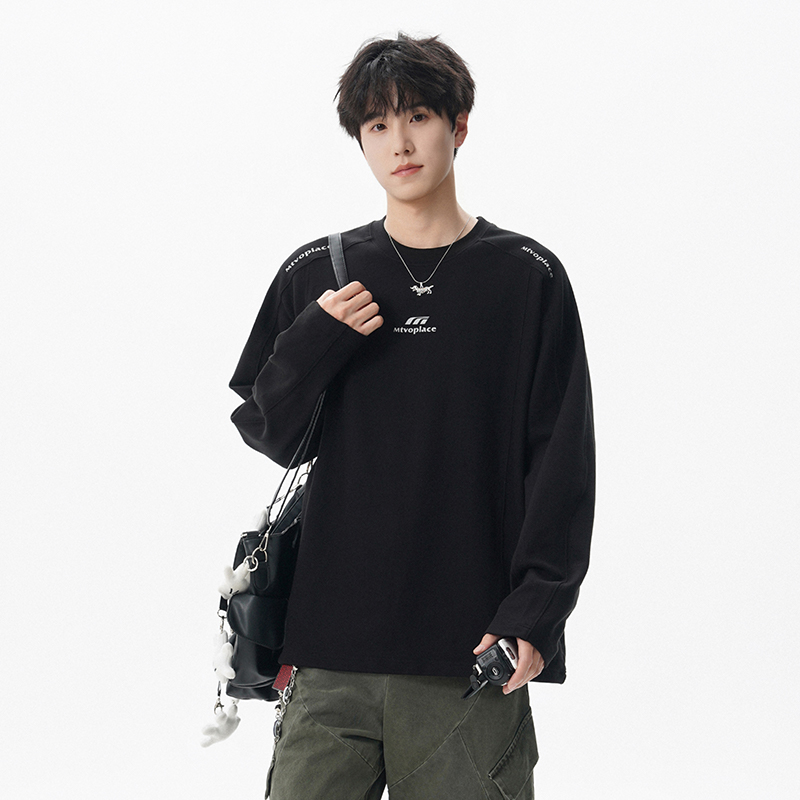 100%纯棉长袖 宽松遮肉显瘦套头外穿拼接薄卫衣B T恤上衣女秋冬韩版