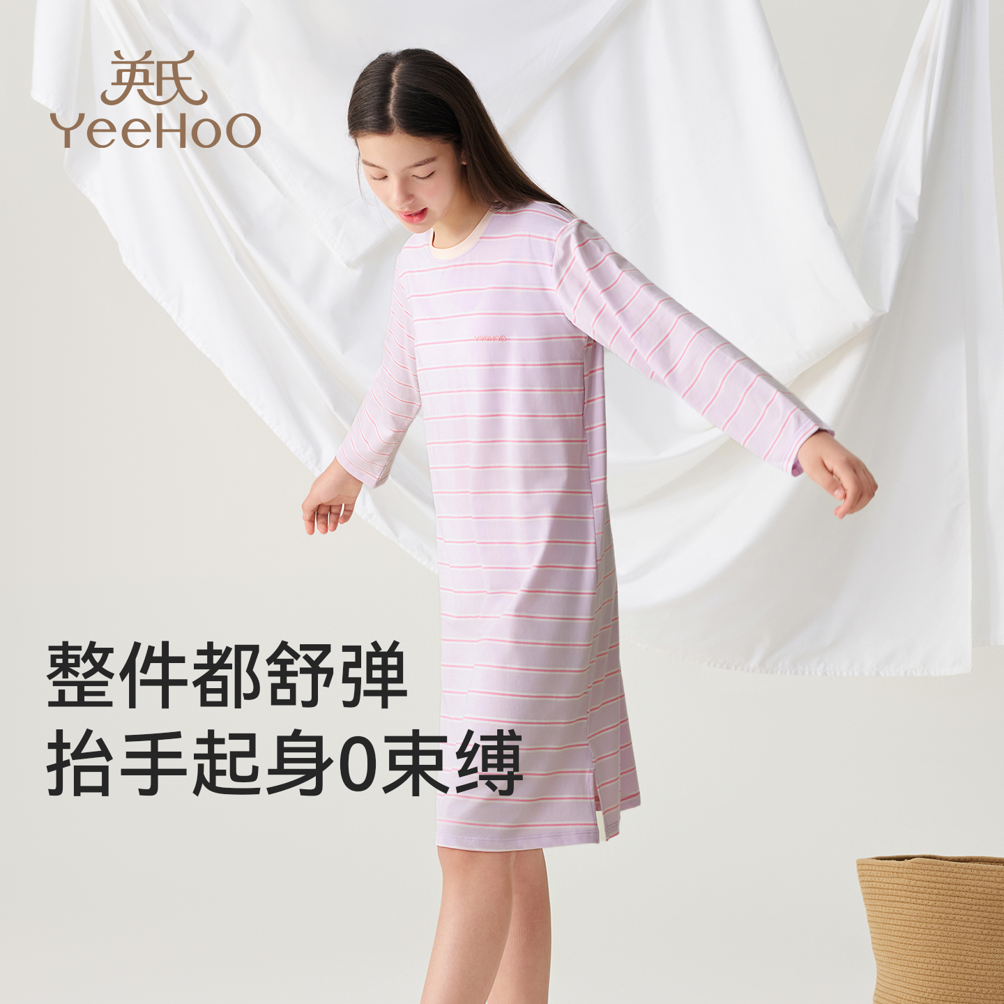 英氏少女睡裙女孩青少年长袖 连衣裙子初中高中学生纯棉睡衣春秋