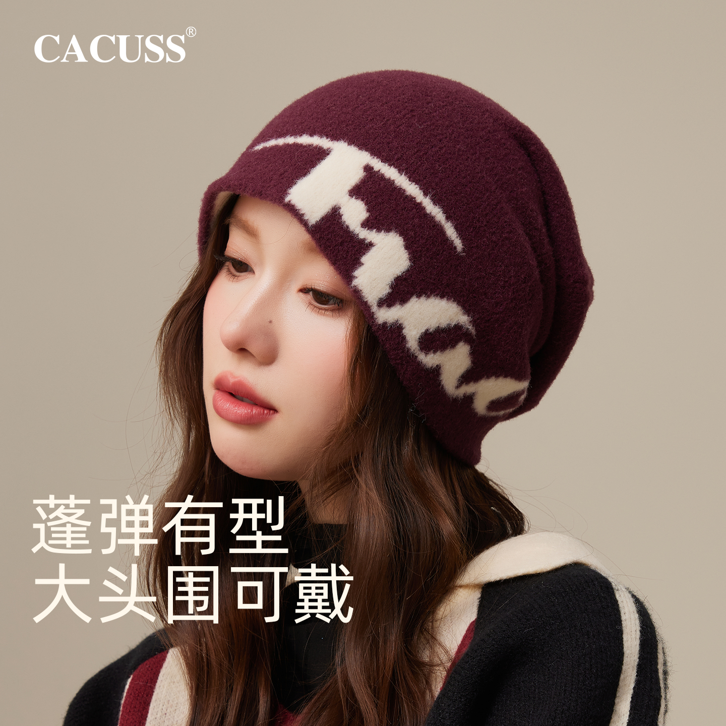 黄色针织帽女2025新款 秋川西旅游山系堆堆帽子大头围包头毛线冷帽