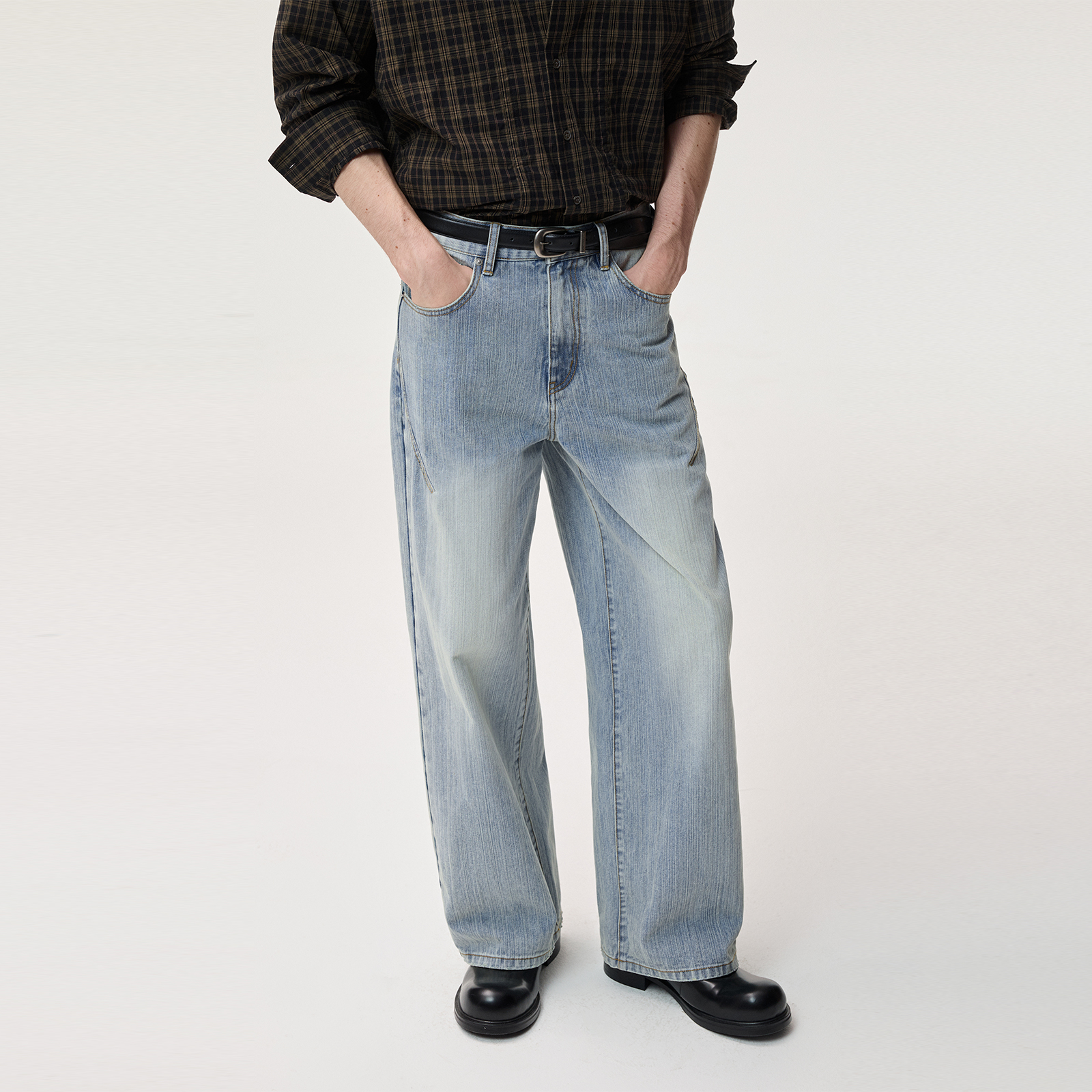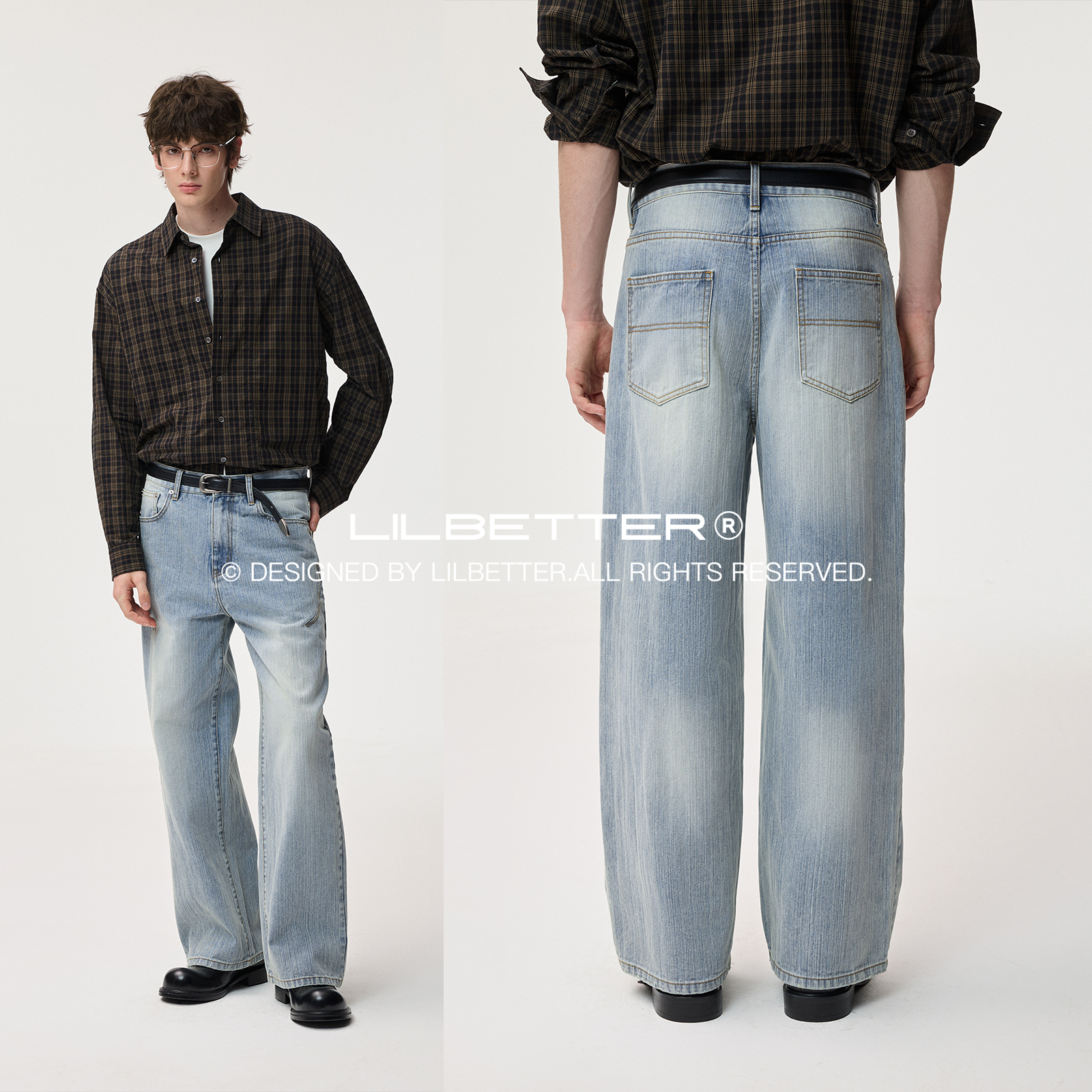 Lilbetter复古水洗浅蓝竹节肌理牛仔长裤 2025冬中低腰分割直筒裤