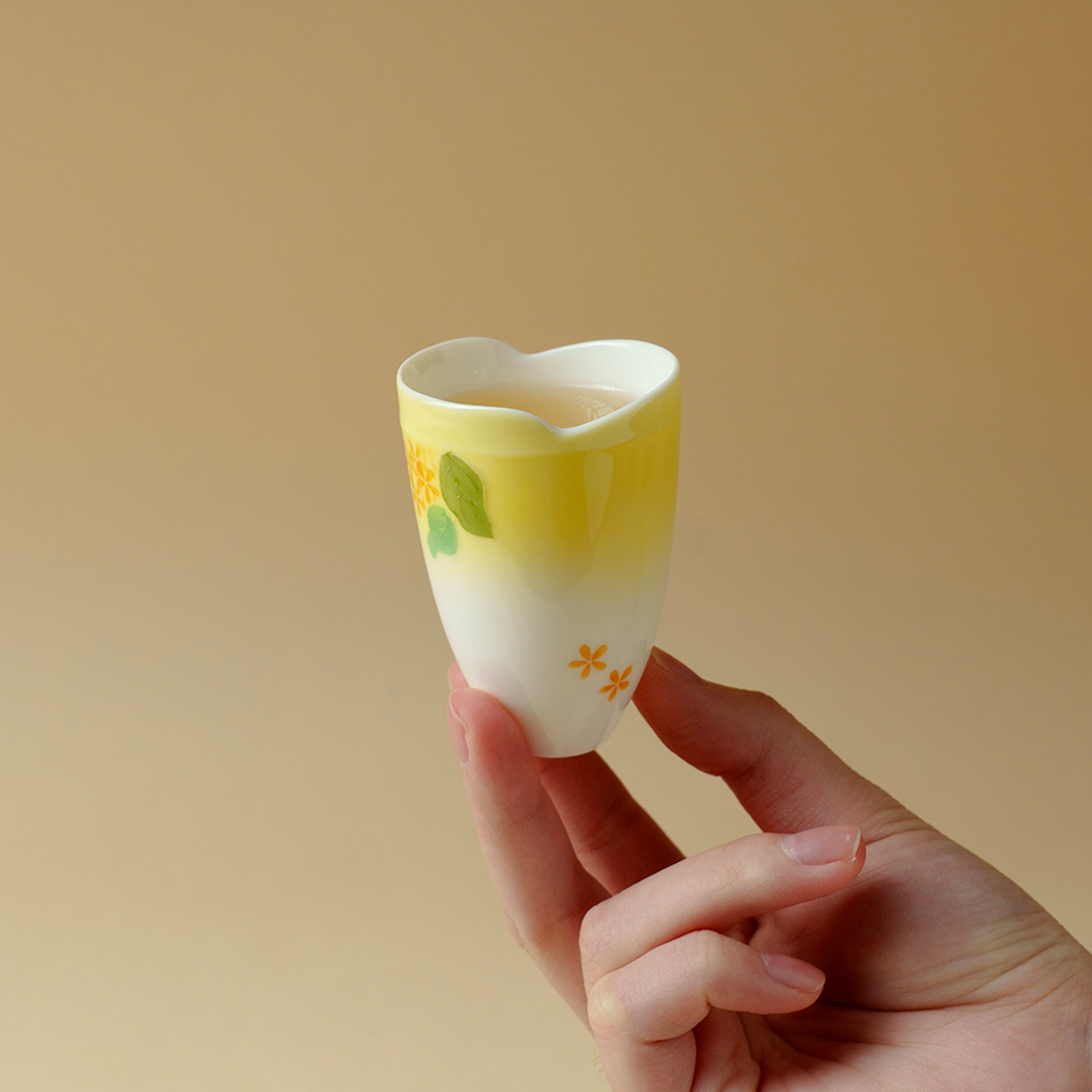 言仓线条小狗泡茶分离杯带滤托陶瓷水杯办公室茶杯生日礼物