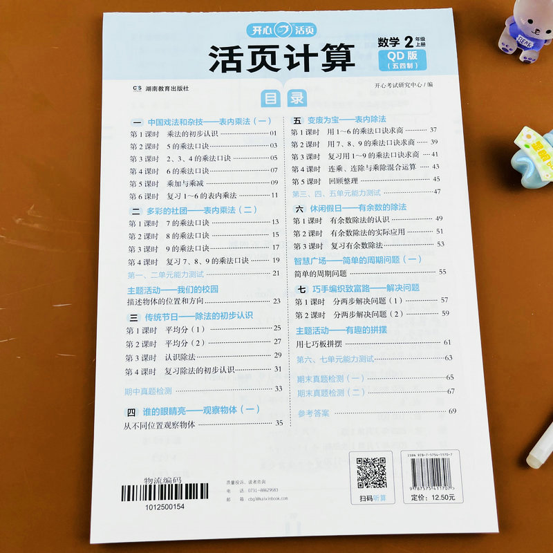 初步认识表内除法有余数 青岛版 计算2年级上学期表内乘法除法 小学数学活页计算二年级上册教材同步口算竖式 除法 五四制2025新版