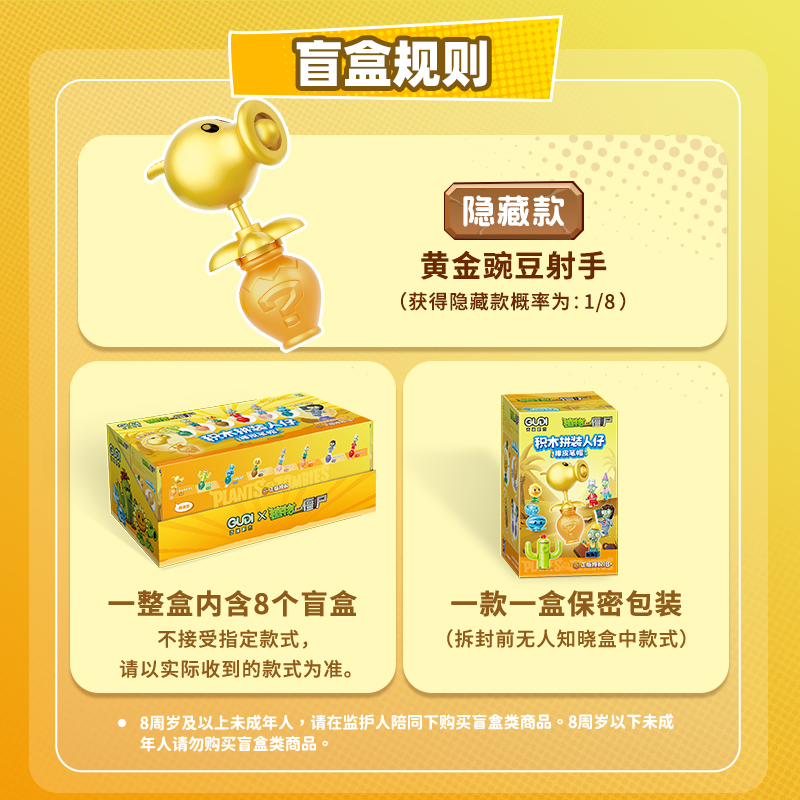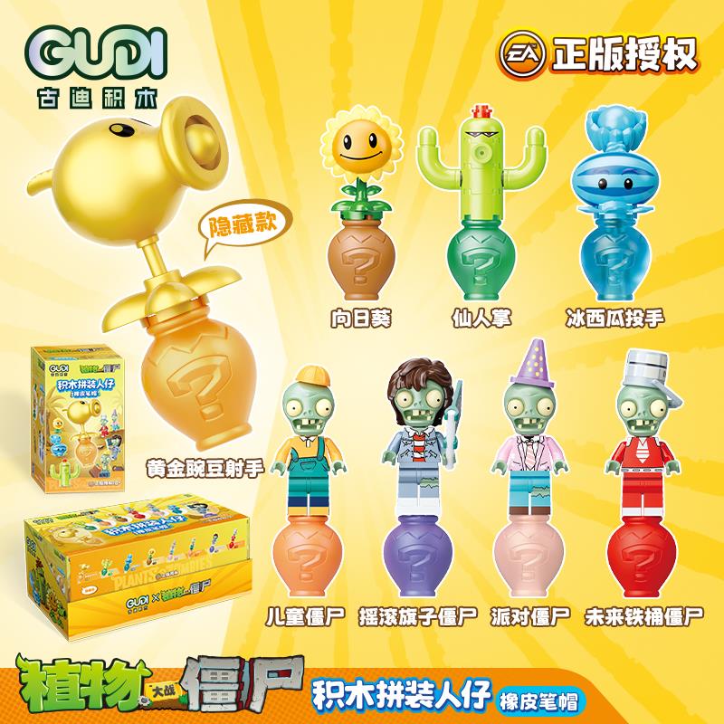 古迪植物大战僵尸积木橡皮笔帽盲盒趣玩正版 授权男女孩玩具礼物