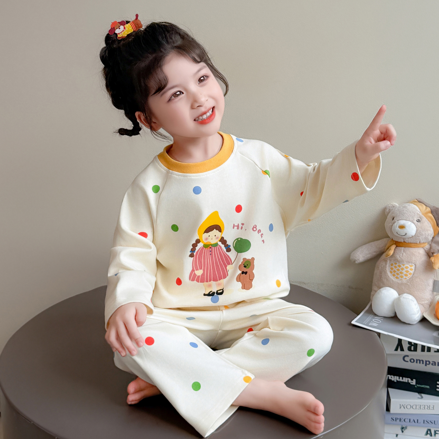带胸垫防凸点全棉家居服套装 秋冬款 长袖 纯棉秋季 睡衣女士2025新款