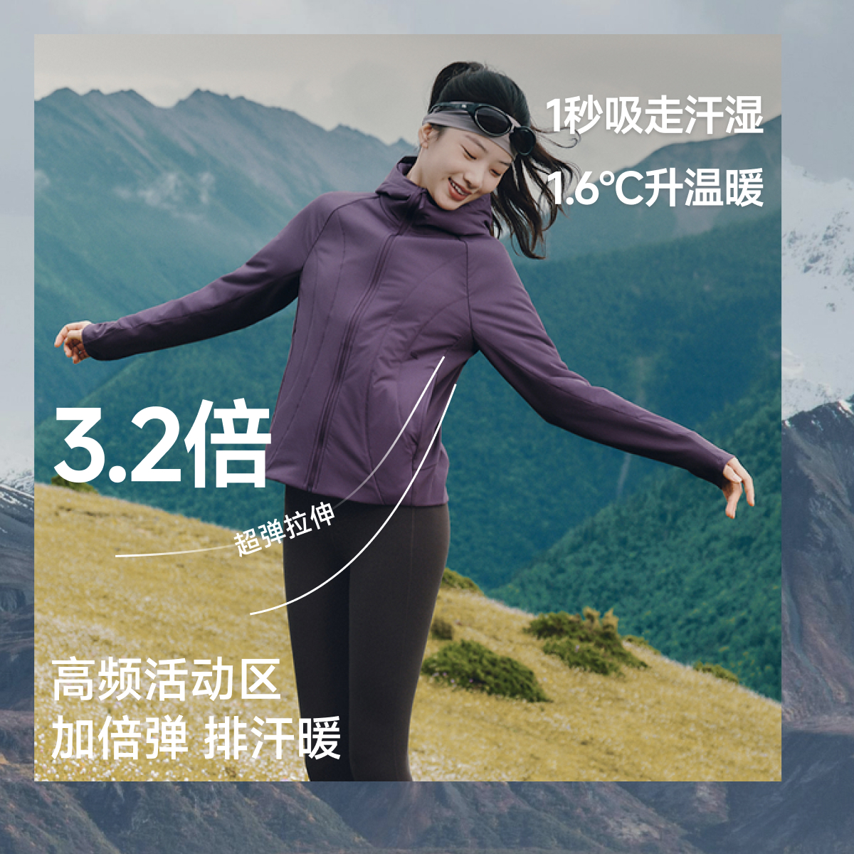 蕉下女士弹力气绒拉链外套连帽中暖CL231防风轻薄保暖三防户外