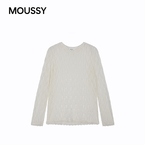 028IAC30 MOUSSY 温柔风蕾丝肌理圆领打底针织衫 新品 1076 2025秋季