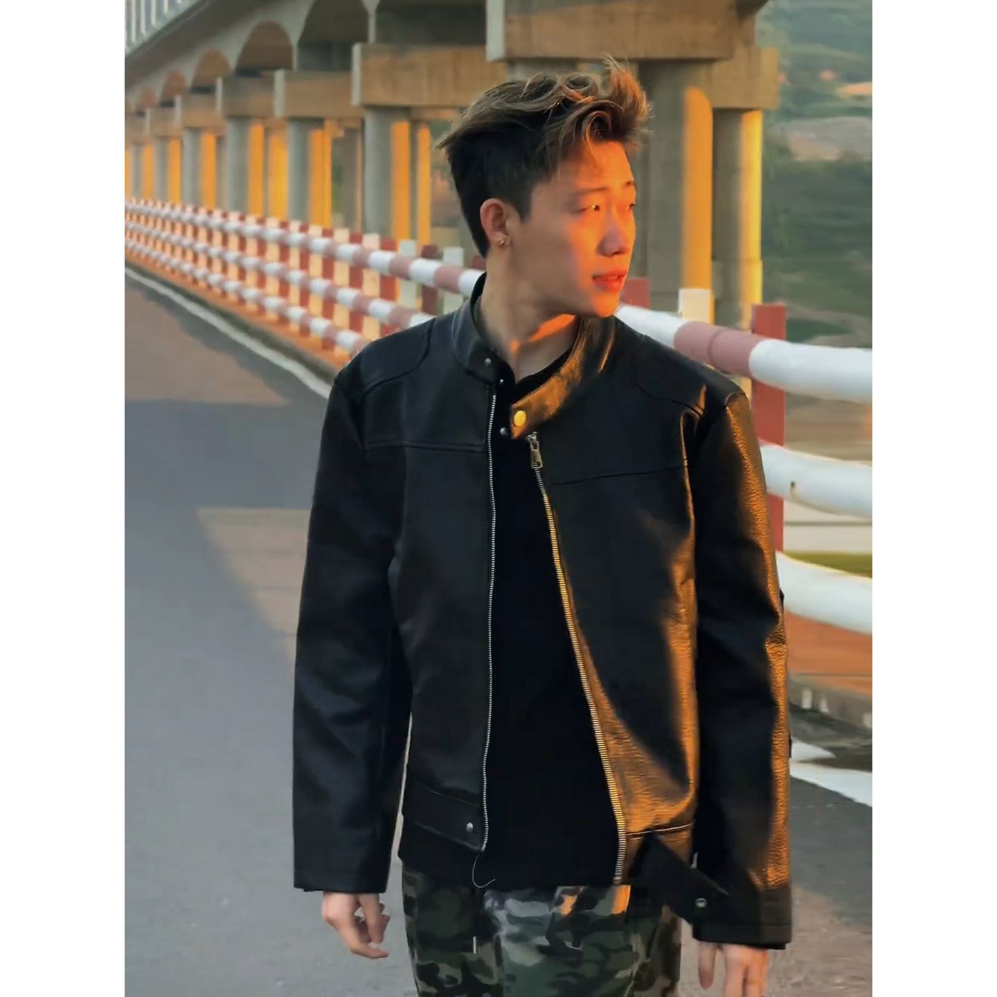 复古立领夹克哈灵顿棒球服 美式 cleanfit黑色短款 机车皮外套男秋季