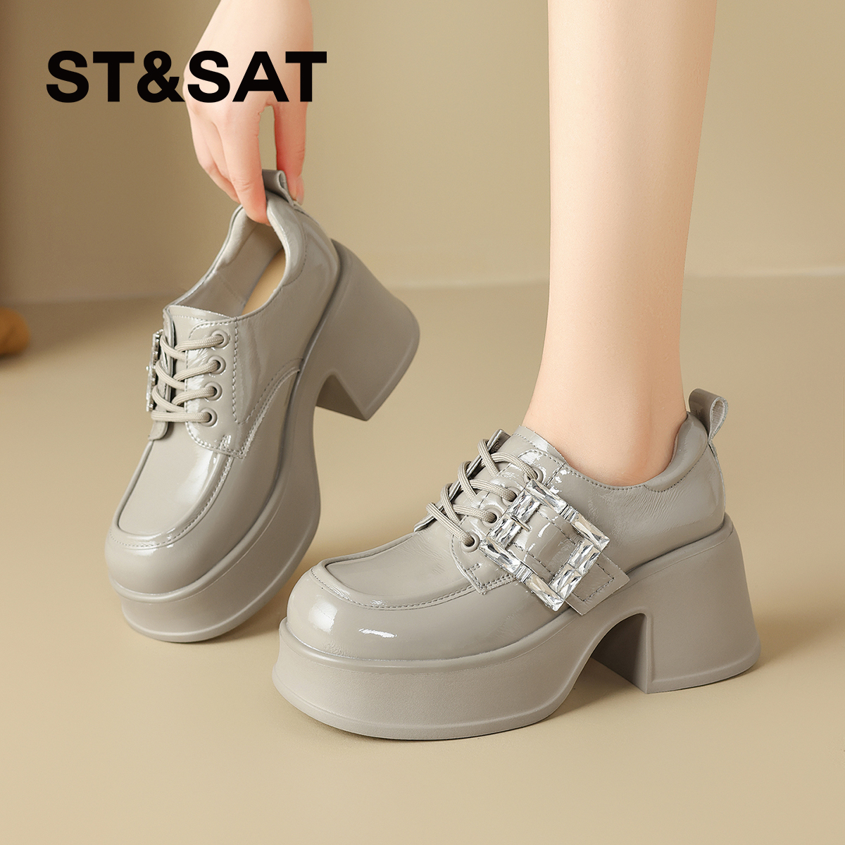 女鞋 单鞋 2025秋季 水钻粗跟小皮鞋 新款 星期六英伦风真皮厚底乐福鞋