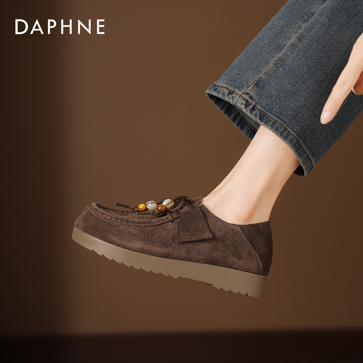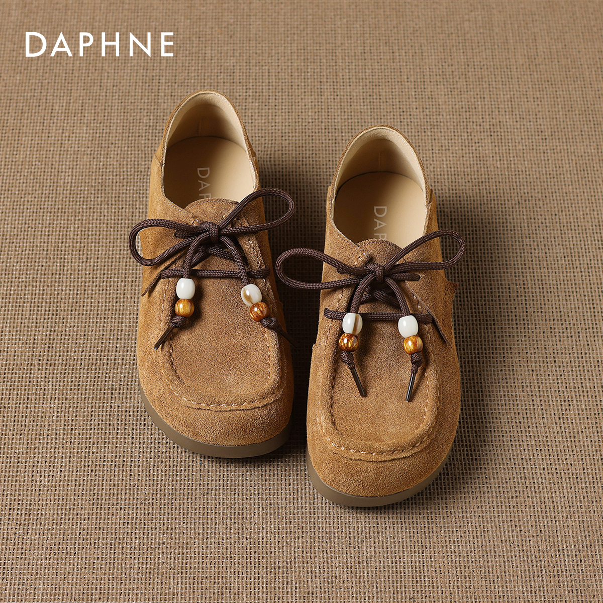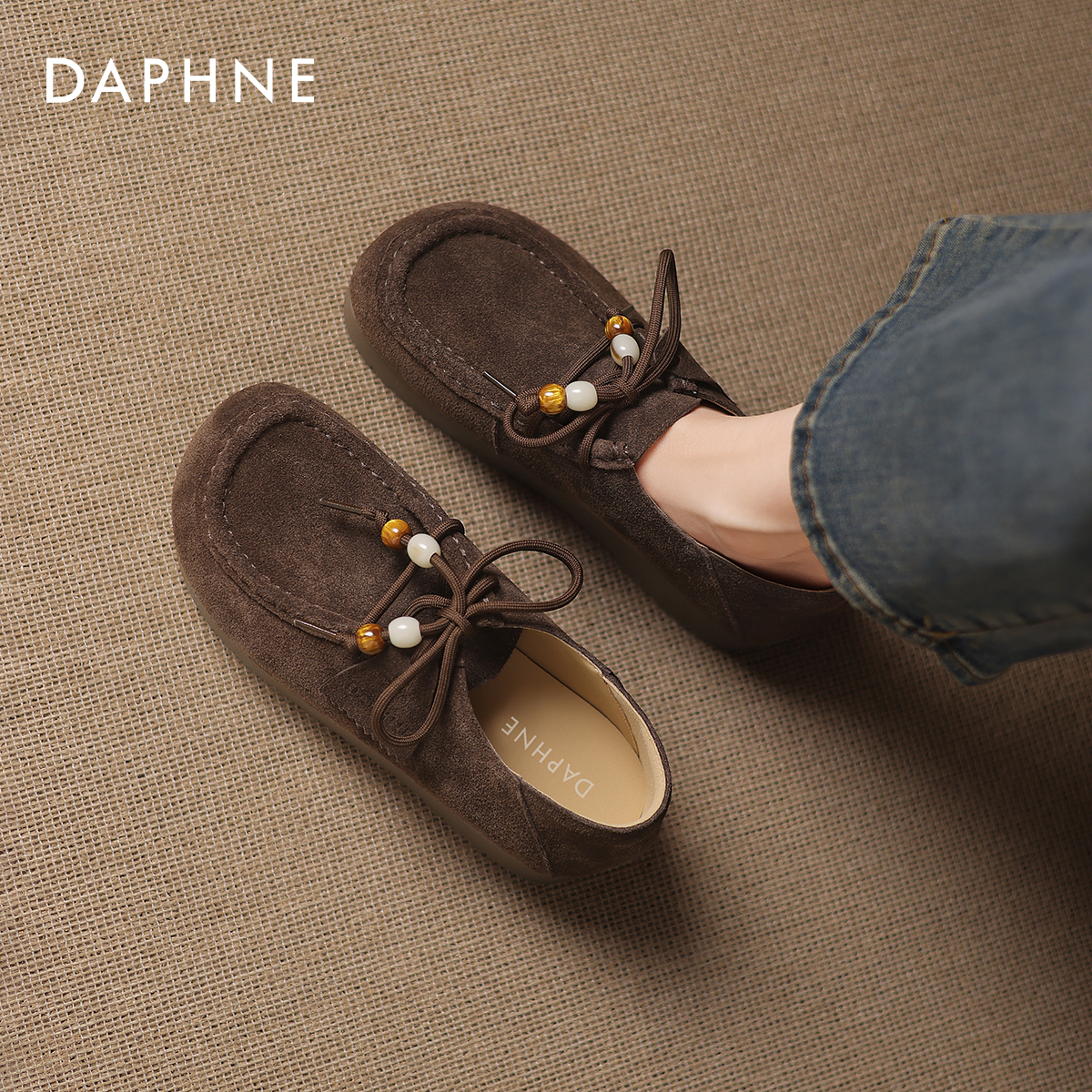 软底豆豆鞋 达芙妮厚底勃肯鞋 复古真皮小皮鞋 一脚蹬单鞋 女2025新款