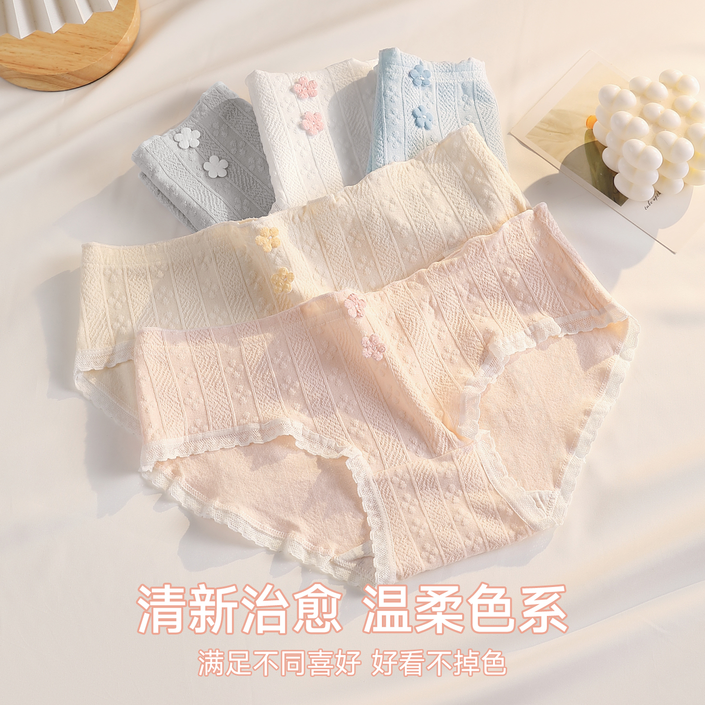 女士纯棉中腰女生内裤 不夹臀抗菌内裤 三角裤 新款 短裤 全棉时代内裤