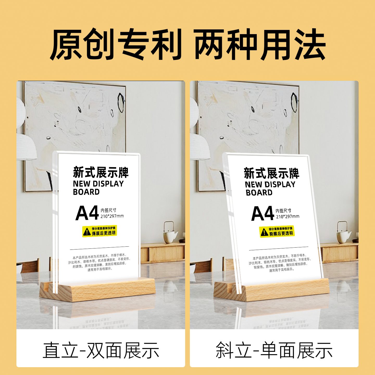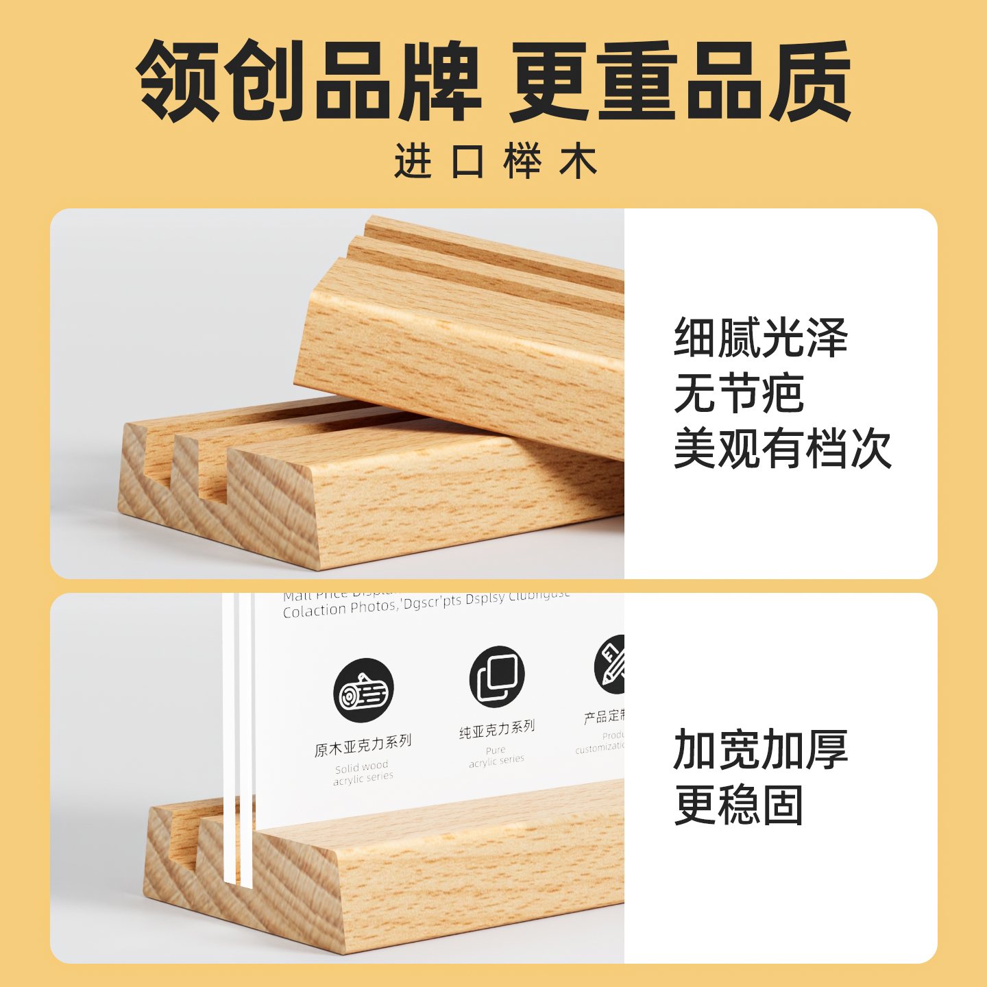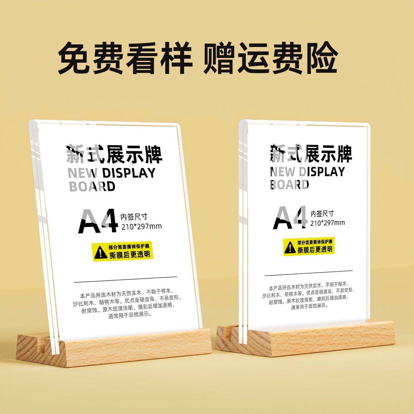 亚克力台卡立牌木质底座台卡实木桌牌a4展示牌菜单台牌榉木台签价格牌桌面会员充值广告牌餐桌点餐价目表a5纸