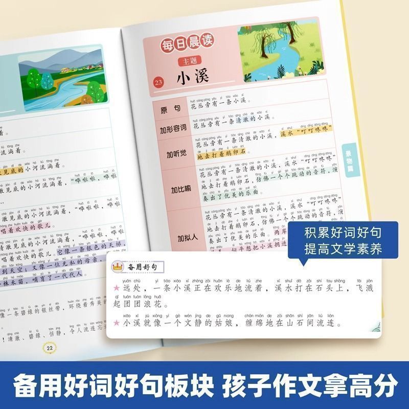 晨读美文 小学生一二三四五六年级语文通用加词扩句五感发写作巧用修辞每日一读100篇好词好句好段作文素材 扩句法