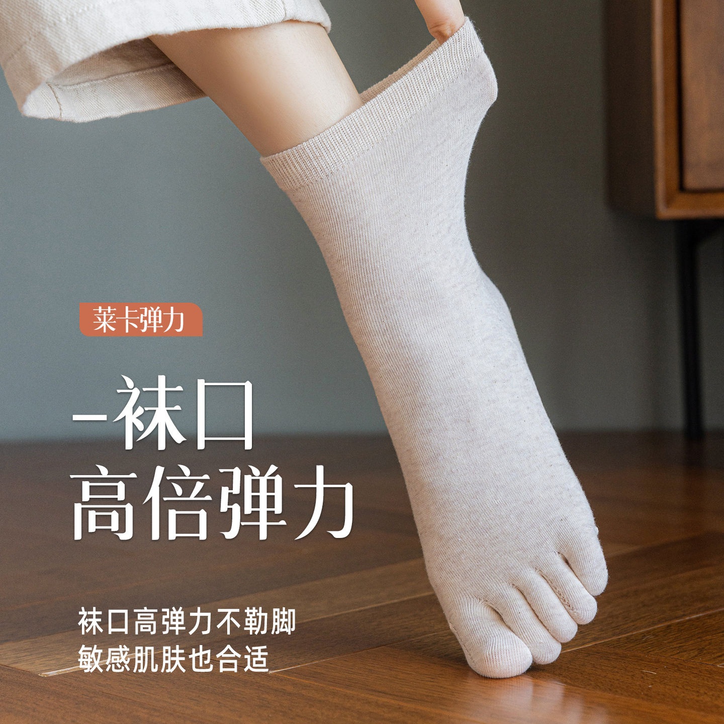 纯棉五指袜女中筒春秋季 厚分趾长袜全棉无骨 抗菌防臭防脚气秋冬款