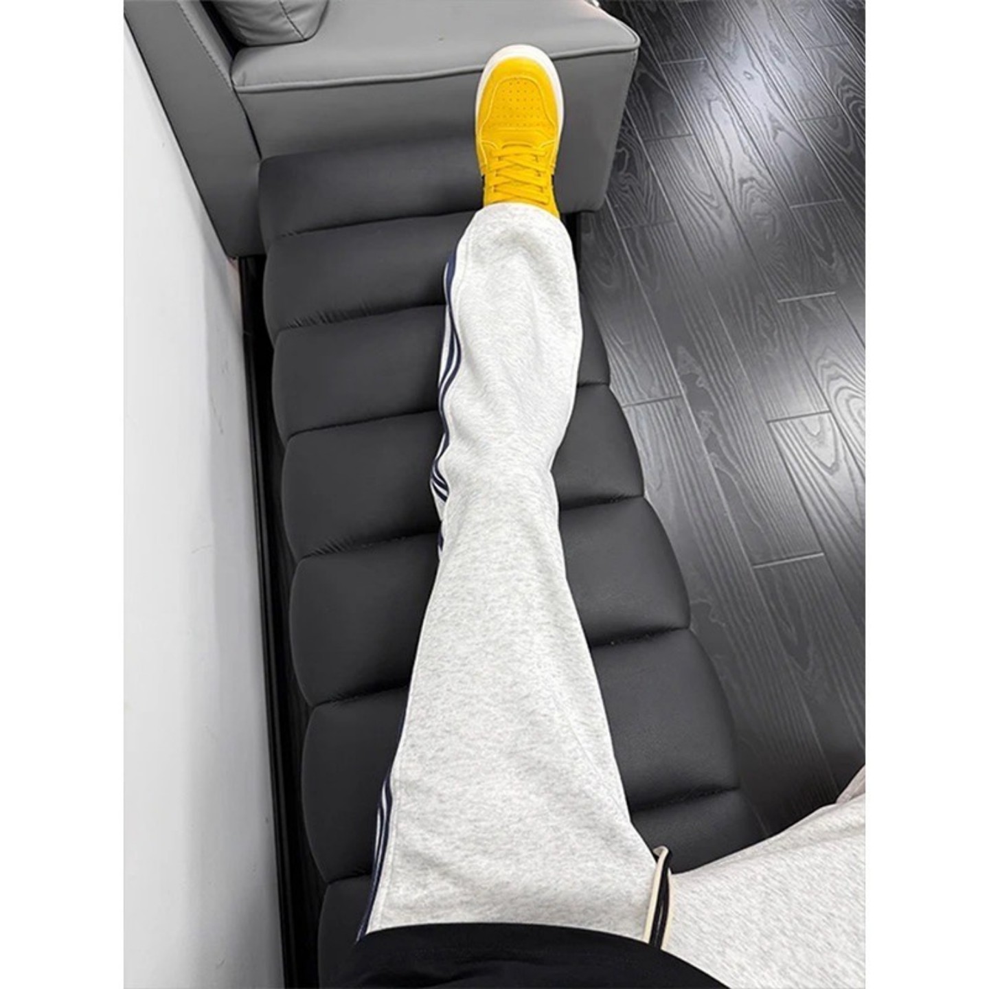 加绒街舞穿搭褶皱宽松休闲长裤 女秋冬季 子 灰色运动卫裤 自然涩美式