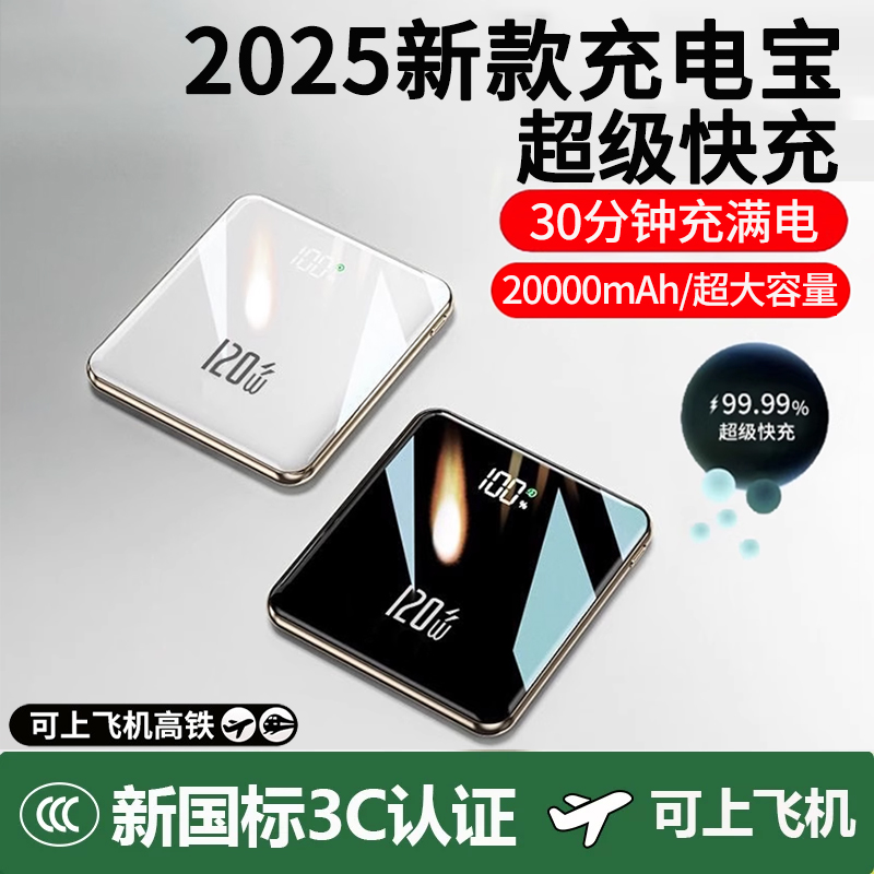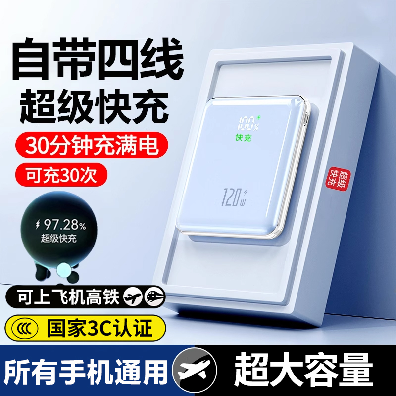 3C认证可上飞机充电宝正品 超级快充20000毫安超大容量自带线适用vivooppo苹果手机专用移动电源超薄小巧便携