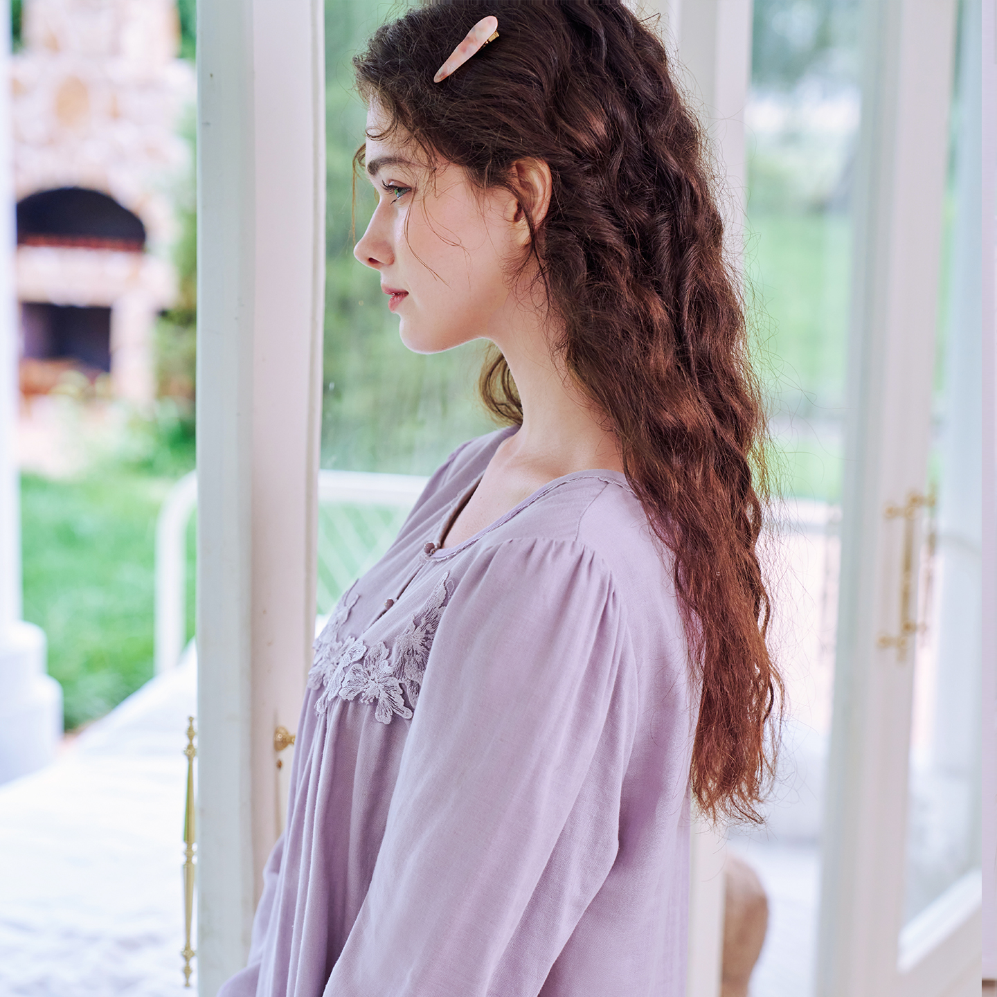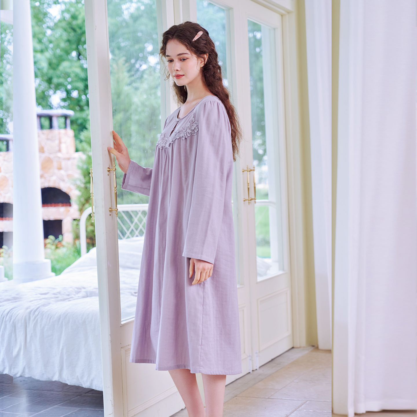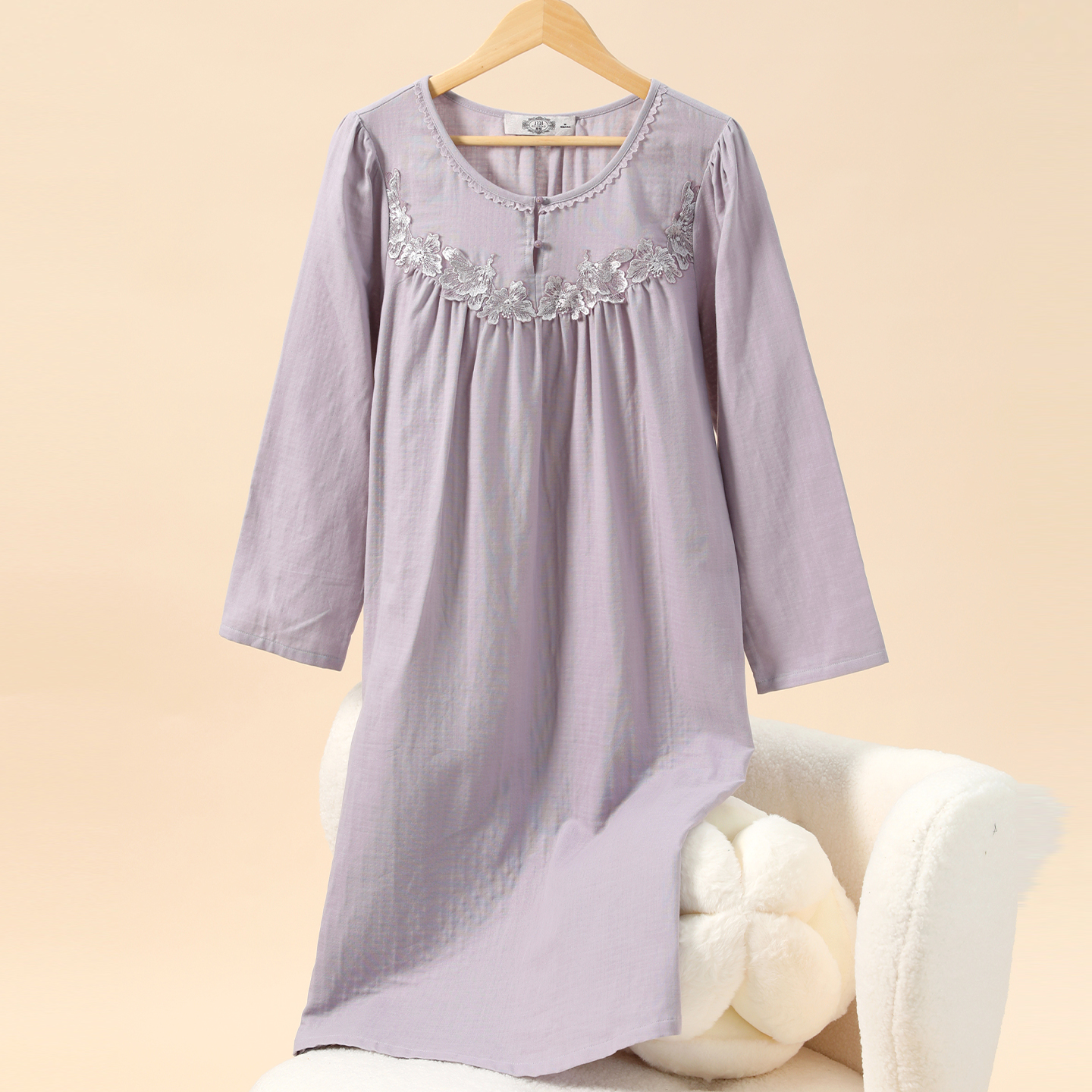 美标春秋新款 纯棉睡裙女全棉蕾丝甜美公主风刺绣家居服睡衣冬 长袖
