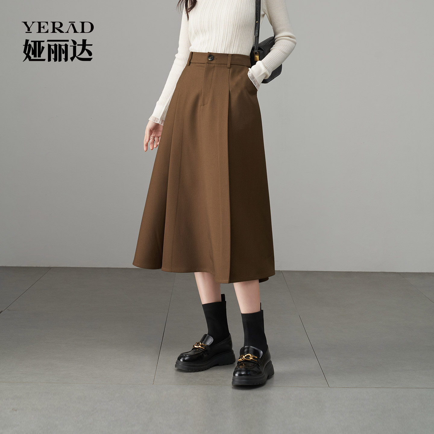 510457 木耳花边裙摆优雅美拉德半身裙子女装 三福长裙2025新款 冬季