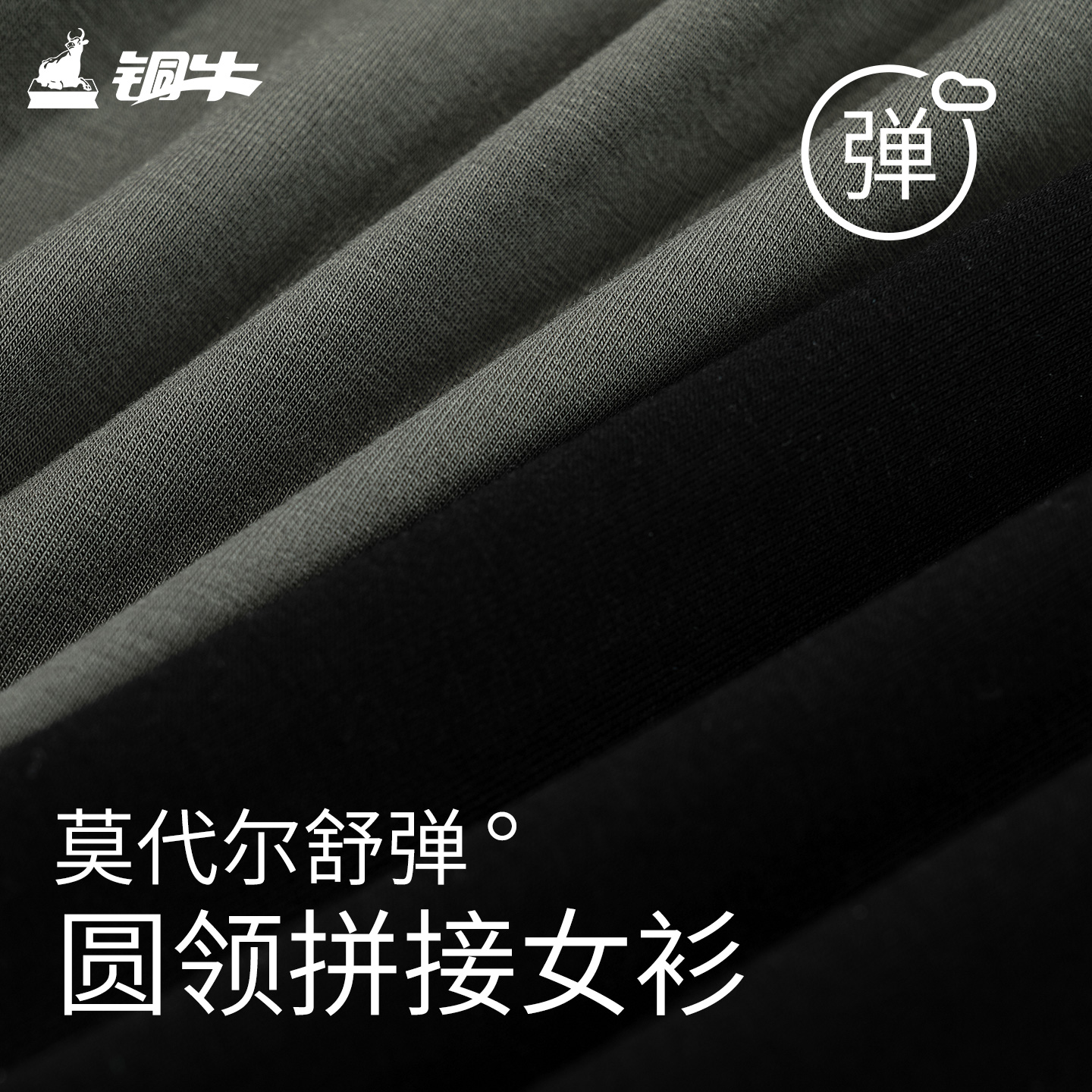女打底衫 轻薄时尚 VS359 2025秋冬新款 铜牛莫代尔舒弹圆领拼接女衫