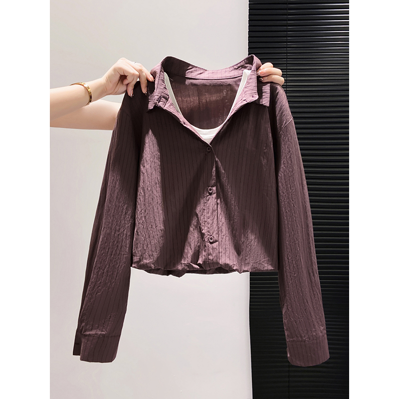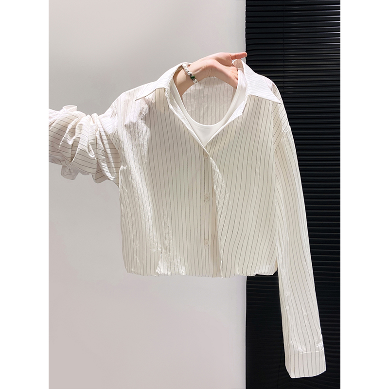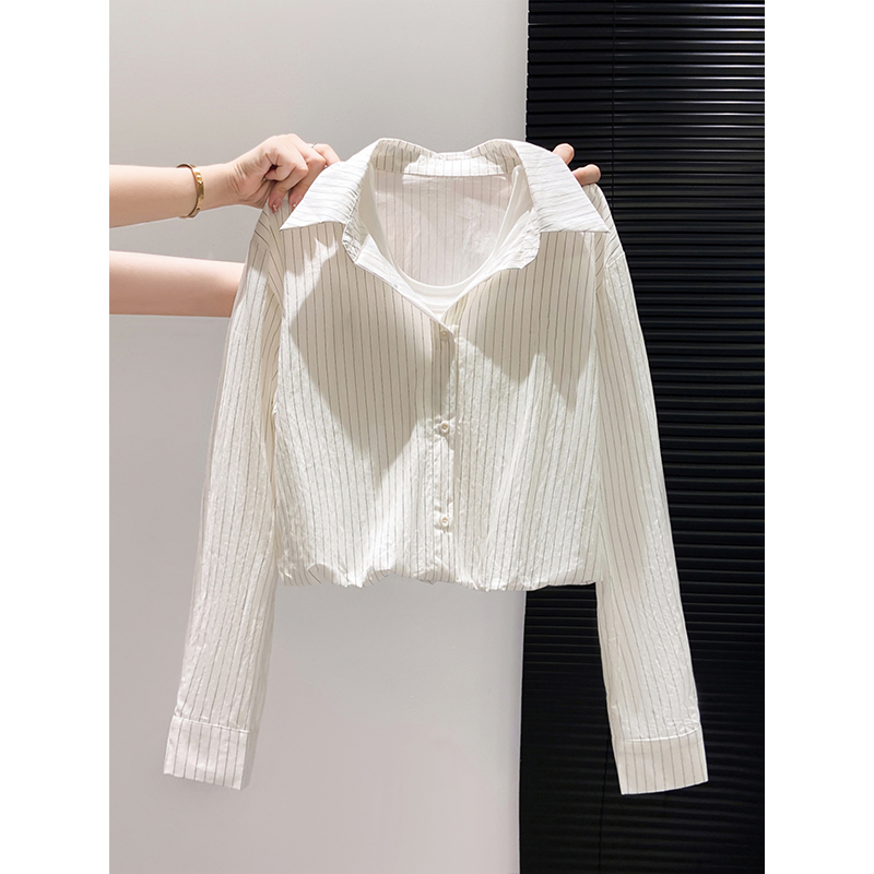 欧货小衫 欧洲站显瘦新款 女设计感叠穿衬衣女 女春秋季 黑色牛仔衬衫