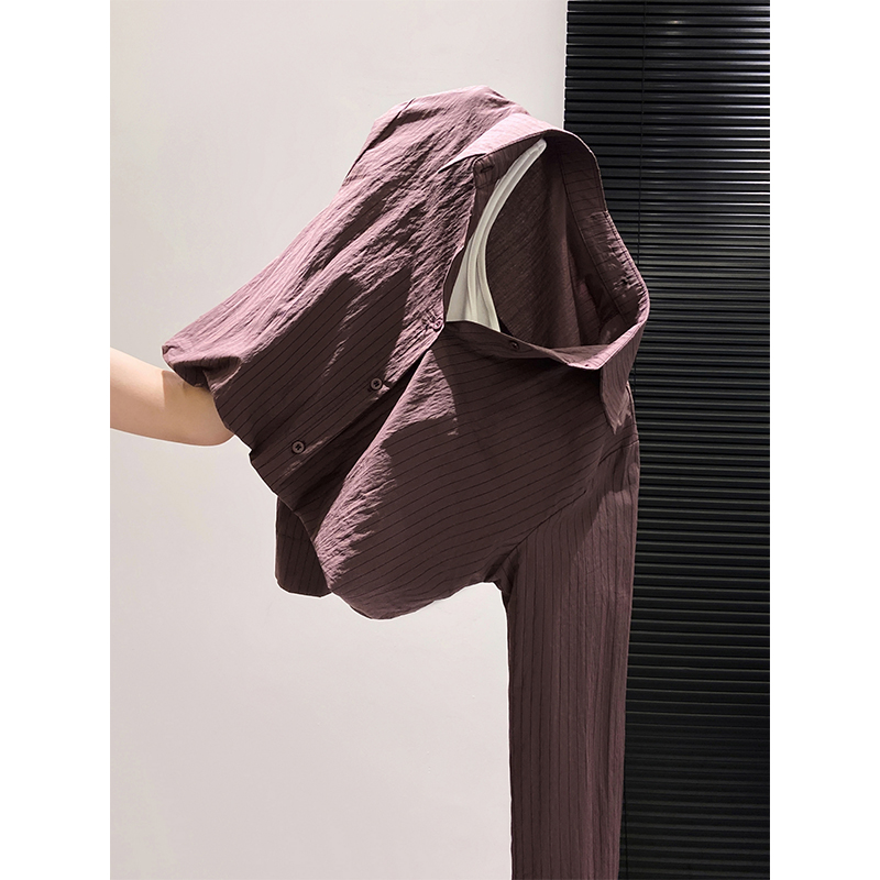 衬衣宽松复古青少年休闲外套 日系少年感长袖 高街竖条纹衬衫 男秋季
