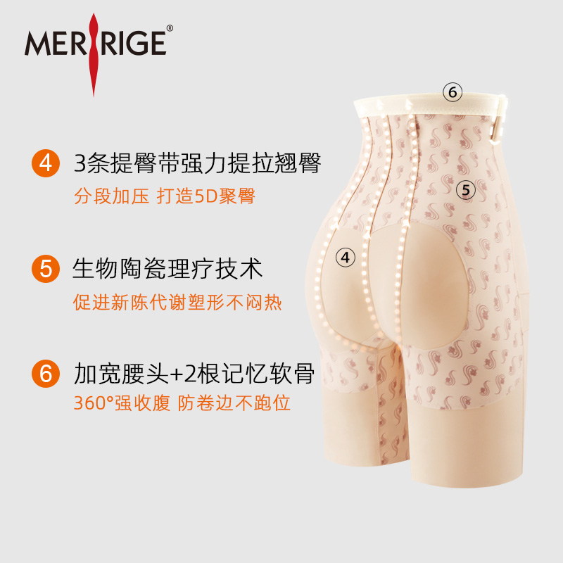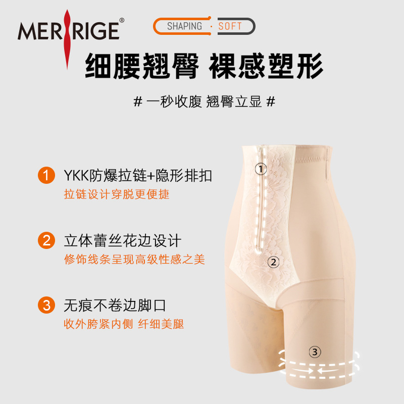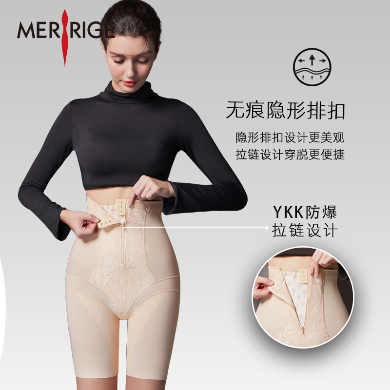 蕾丝塑腰塑形塑身裤 高腰拉链排扣款 merrige官方 收腹翘臀 美人计