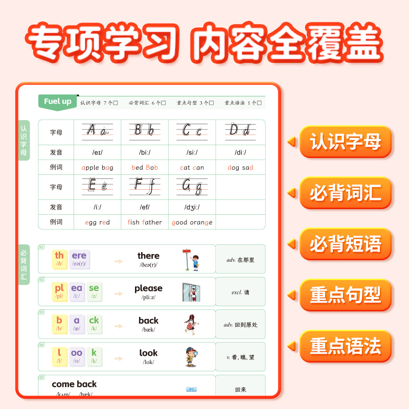 易蓓小学英语背记清单外研版 同步课本单词短语句型语法大全三四五六年级教材全解课堂笔记专项训练知识清单学习资料书