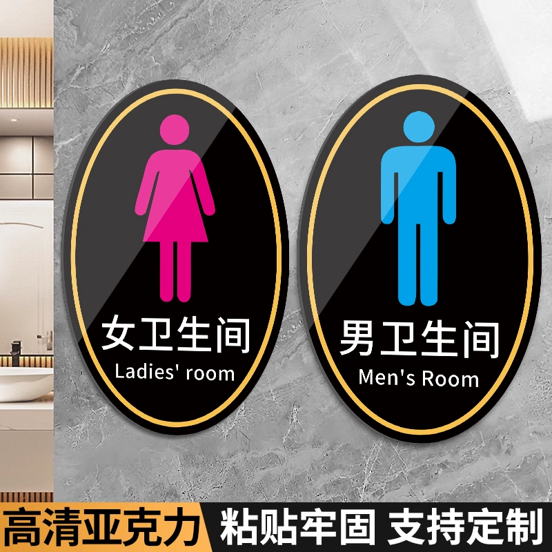 男女卫生间标识牌公共厕所门牌指示牌男女厕所标识牌墙贴男女贴洗手间指示牌门贴创意亚克力洗手间牌墙贴定制