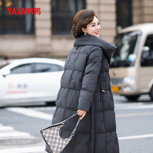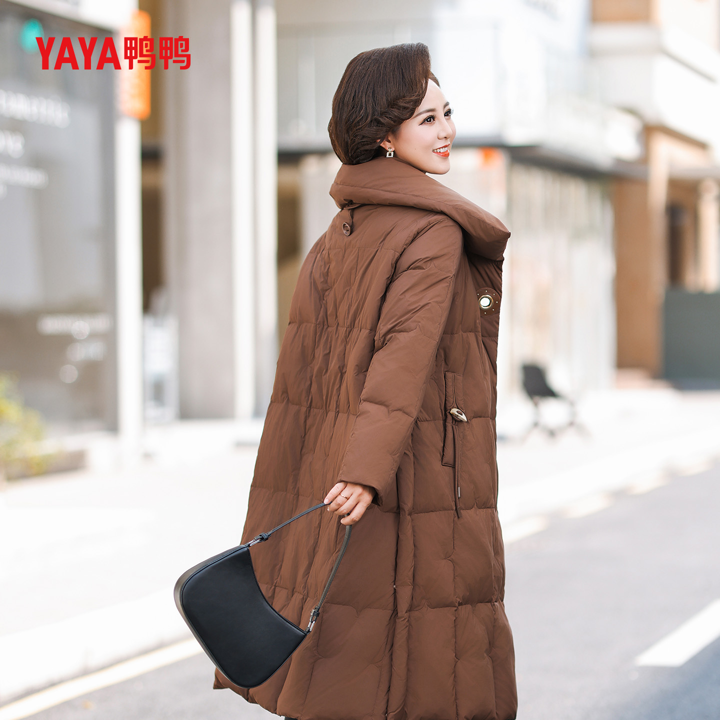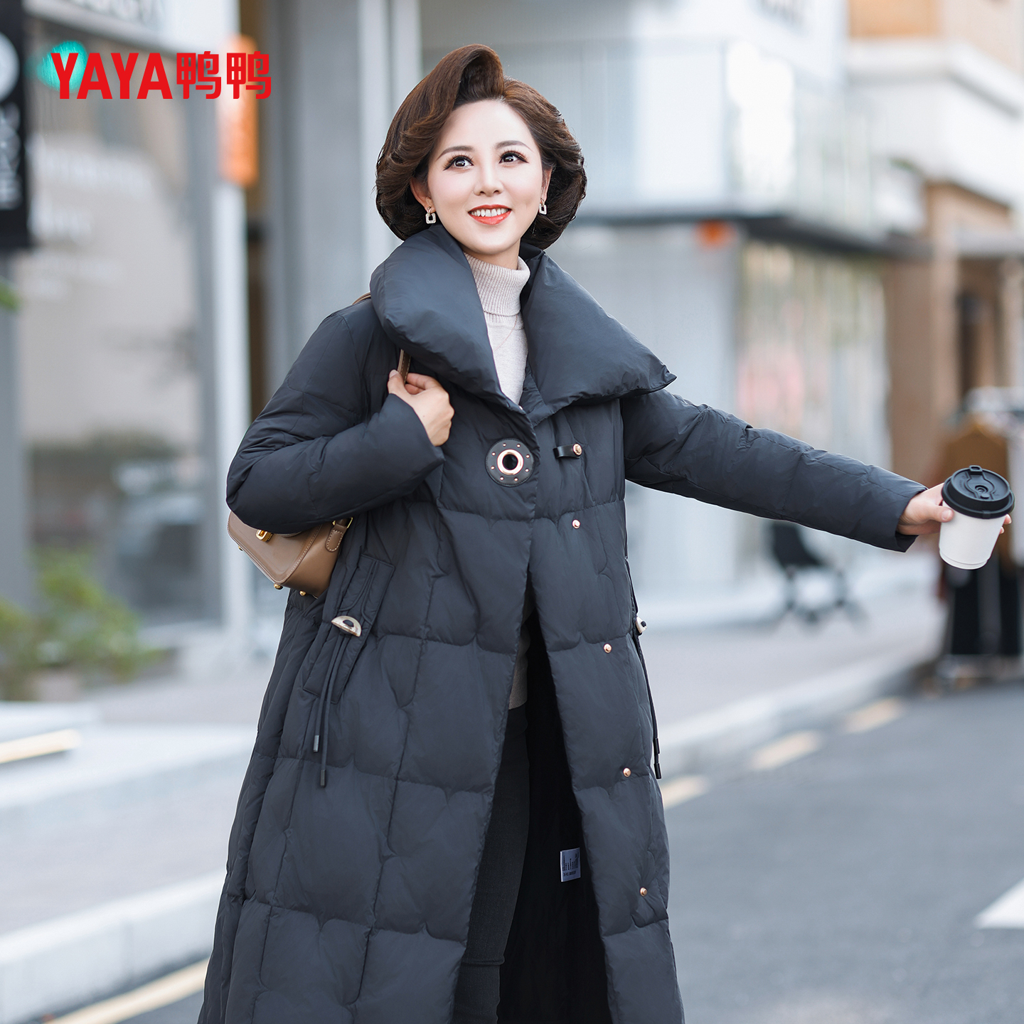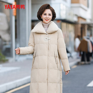 YAYA鸭鸭品牌妈妈羽绒服女2024新款 过膝加厚棉衣中老年外套 中长款