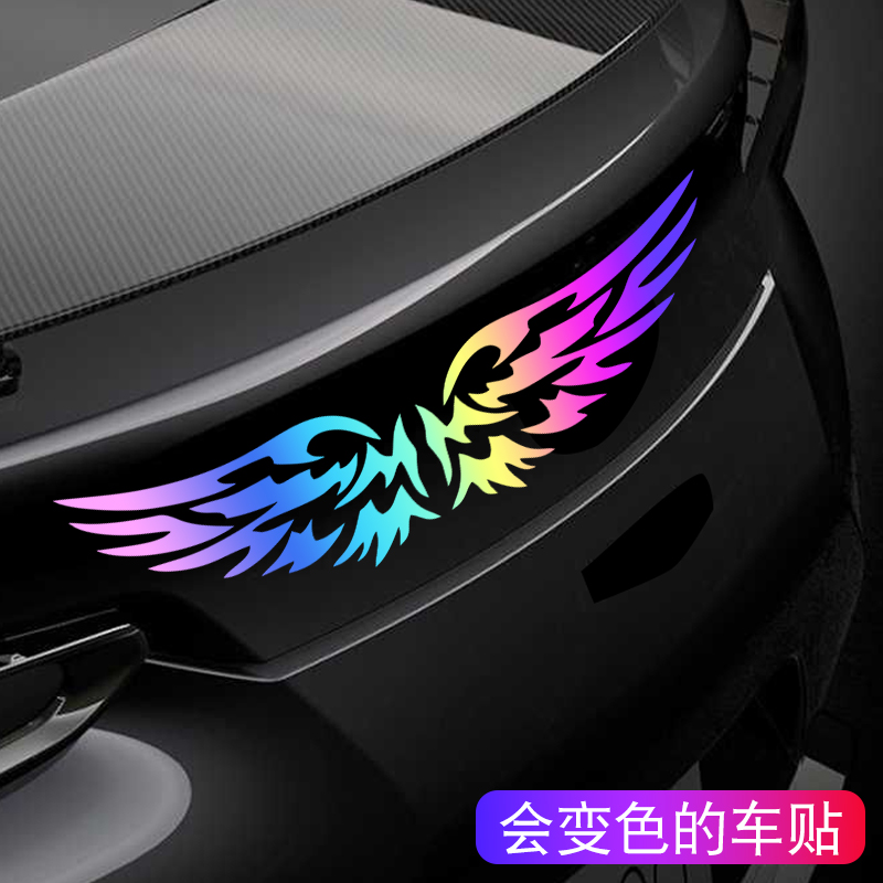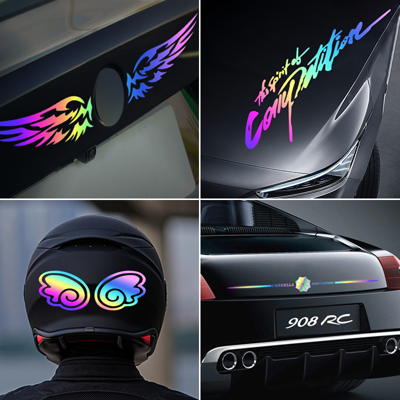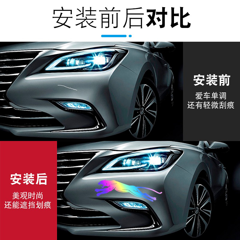 创意遮挡划痕车贴长条七彩镭射高级感前保险杠车身贴刮蹭装 饰补丁