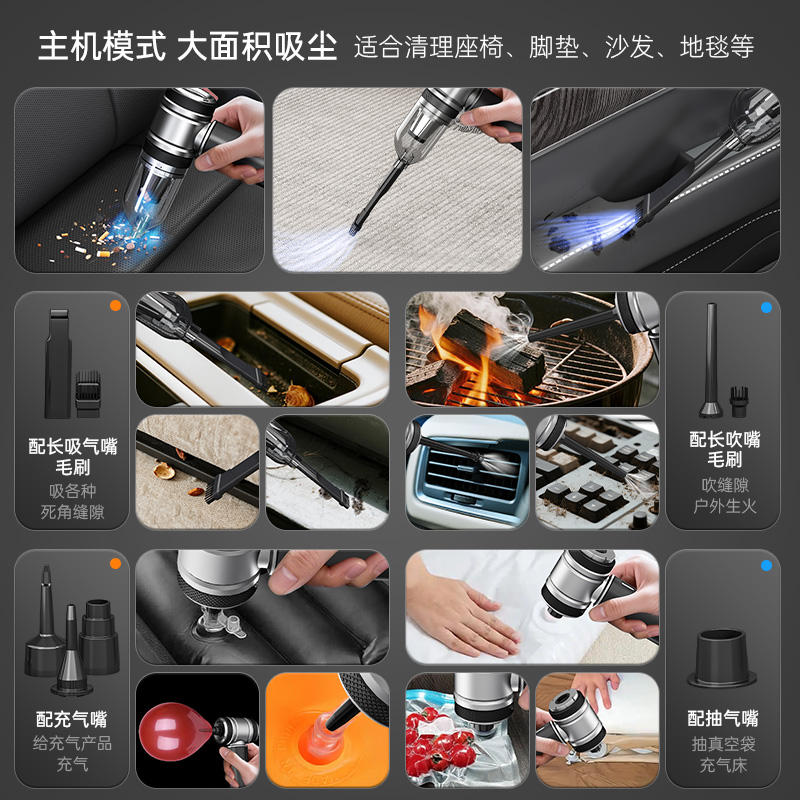 尤利特4档大吸力吸吹一体无刷电机汽车用5合1金属车载无线吸尘器