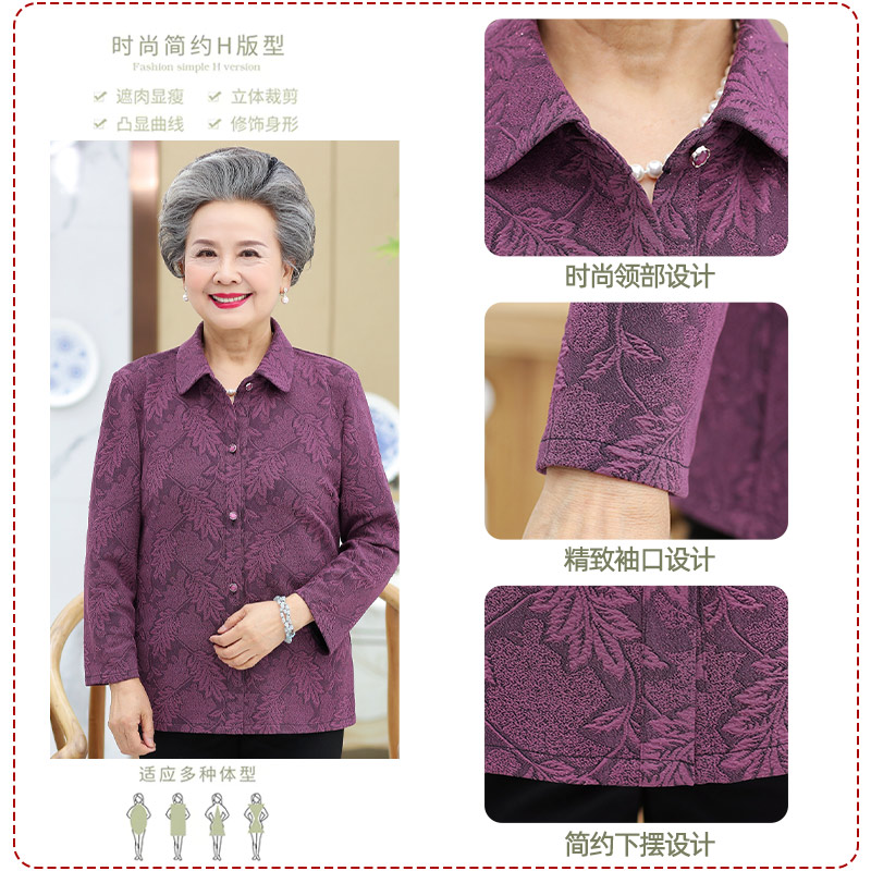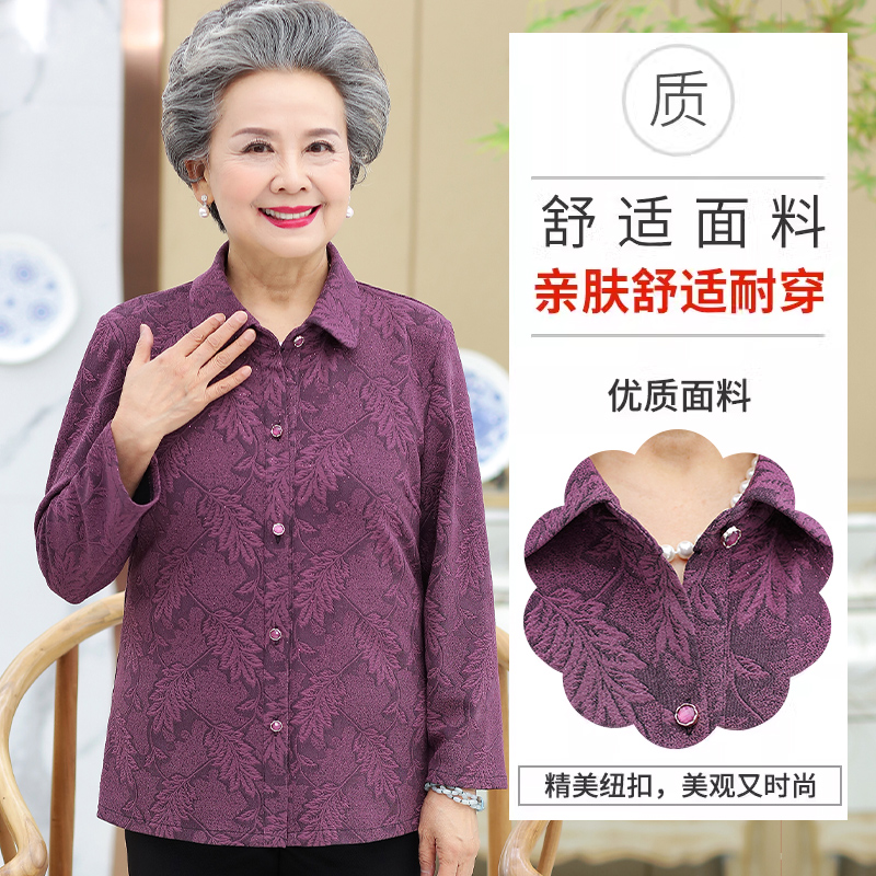 衬衫 衬衣老人薄款 上衣新款 长袖 春秋衣服 奶奶夏季 中老年人妈妈秋装
