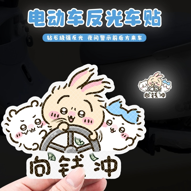吉伊卡哇车身装 车贴遮挡划痕 饰反光贴纸电动摩托车反光警示贴个性