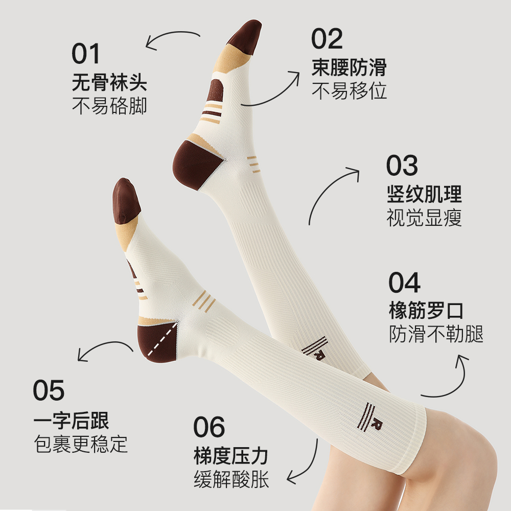 压力小腿袜女秋冬季 强压瘦腿中筒jk袜子长袜过膝袜防滑黑色长筒袜