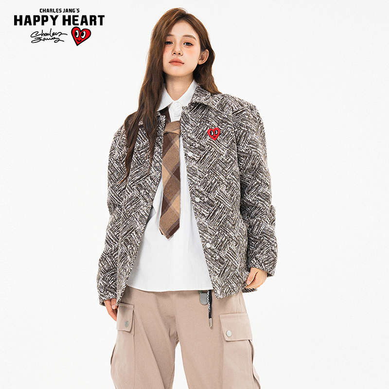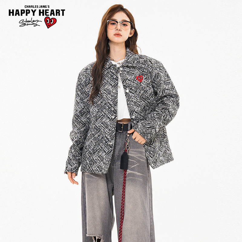 森马外套女秋季 复古风文艺通勤夹克 花苞拼接格子宽松立领2025新款