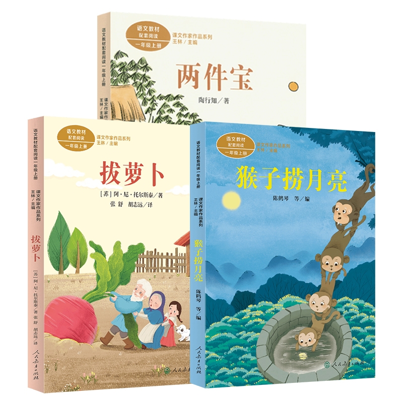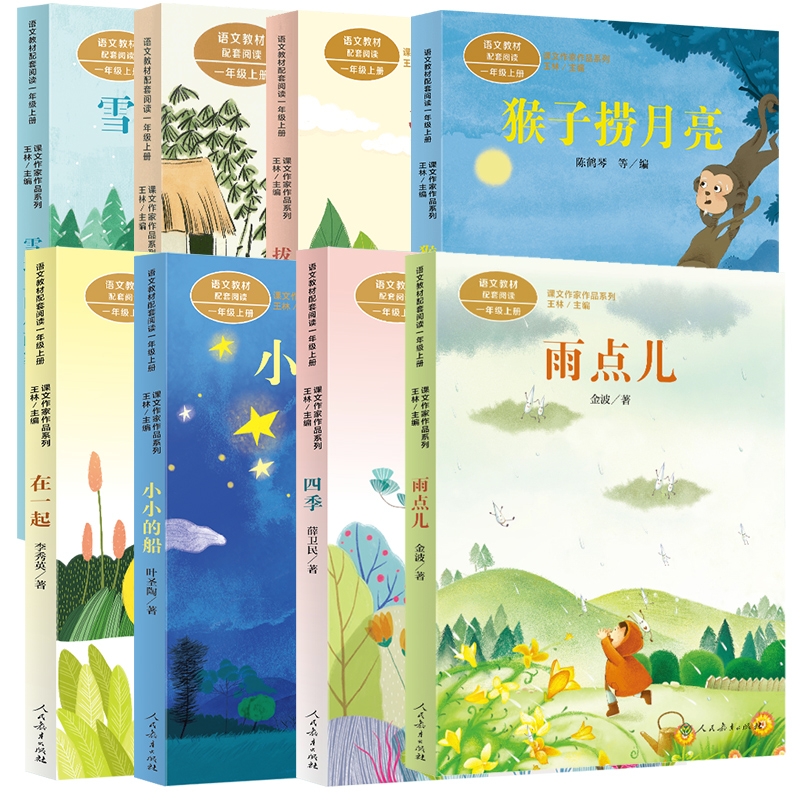 猴子捞月亮 船彩图注音人民教育出版 拔萝卜四季 小画家小小 社一年级上册小学生课外阅读书 雨点儿在一起雪地里 全套8册两件宝