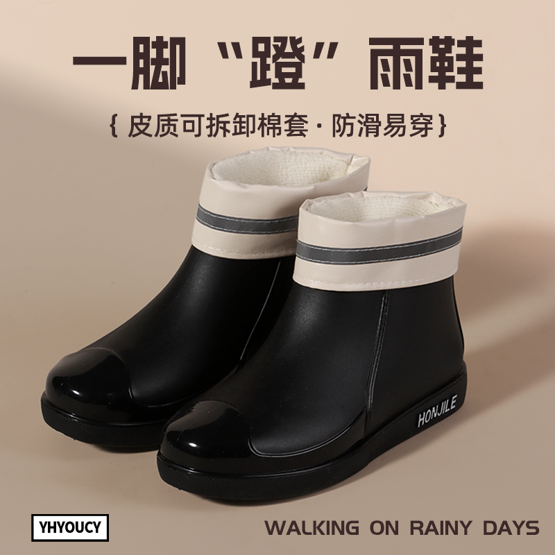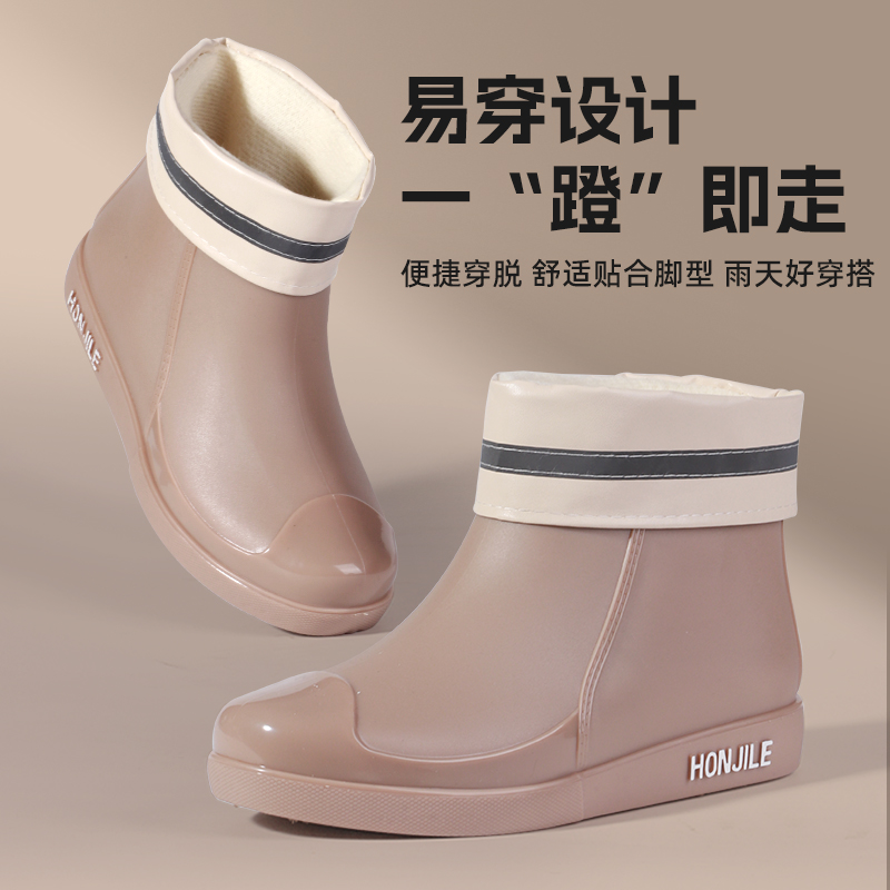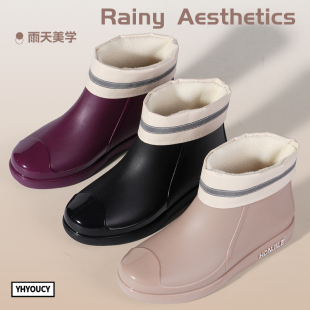 创意加绒四季 雨鞋 个性 休闲外穿防水鞋 通用短筒雨靴女 女士低帮时尚