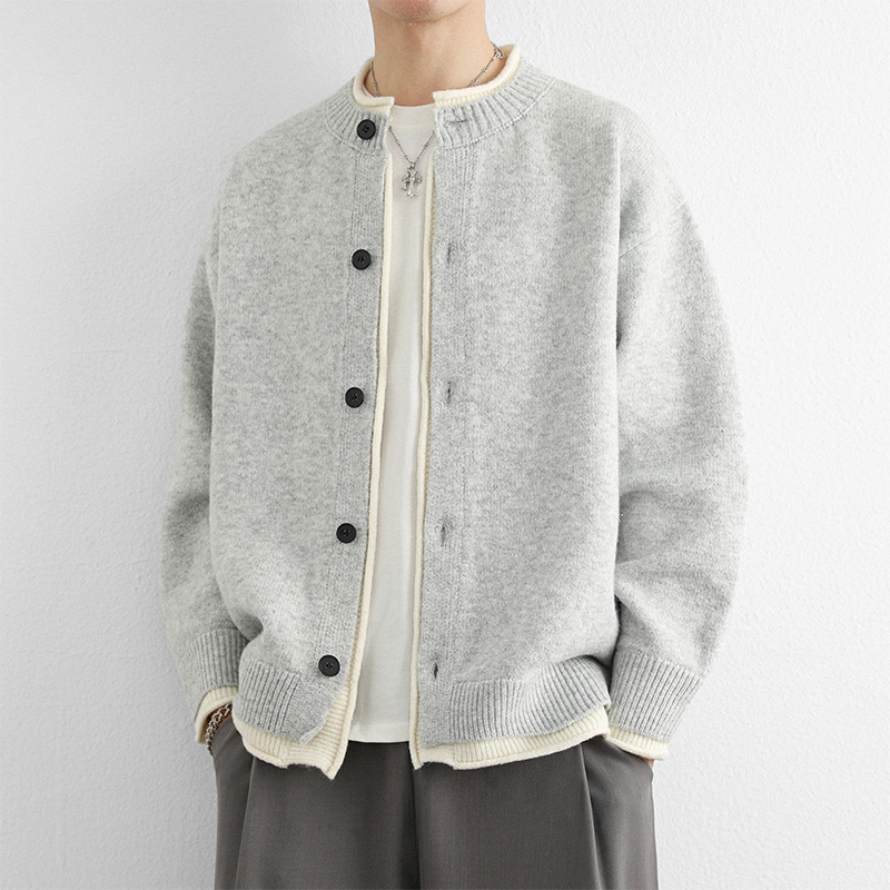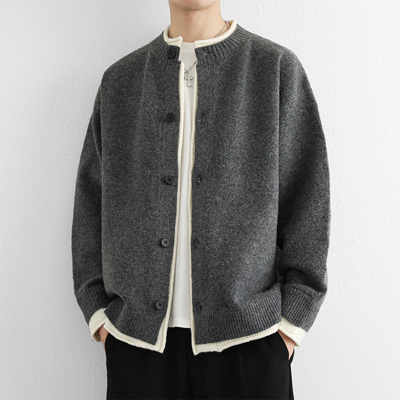 URSBOB青年圆领百搭保暖毛衣潮2025秋冬男士 外套休闲宽松 针织开衫