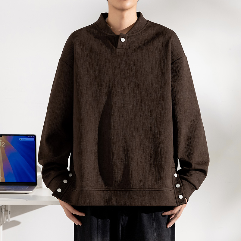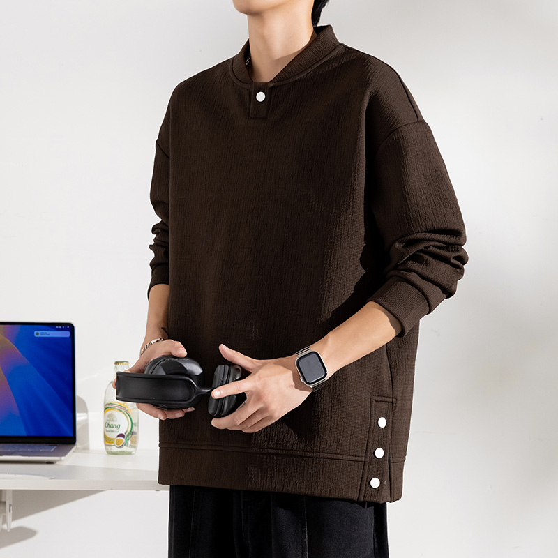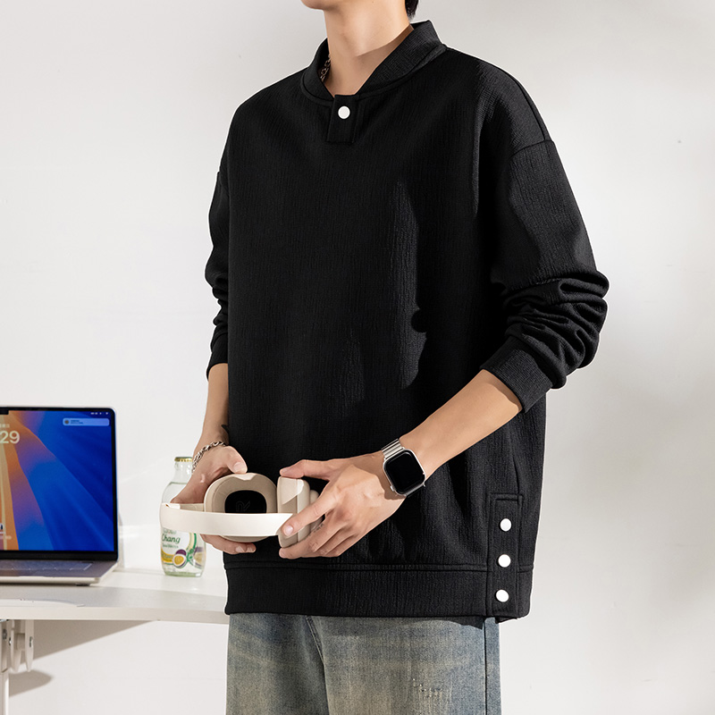 男装 亨利领卫衣男秋季 上衣青少年潮胖子加肥加大大码 长袖 外套 新款